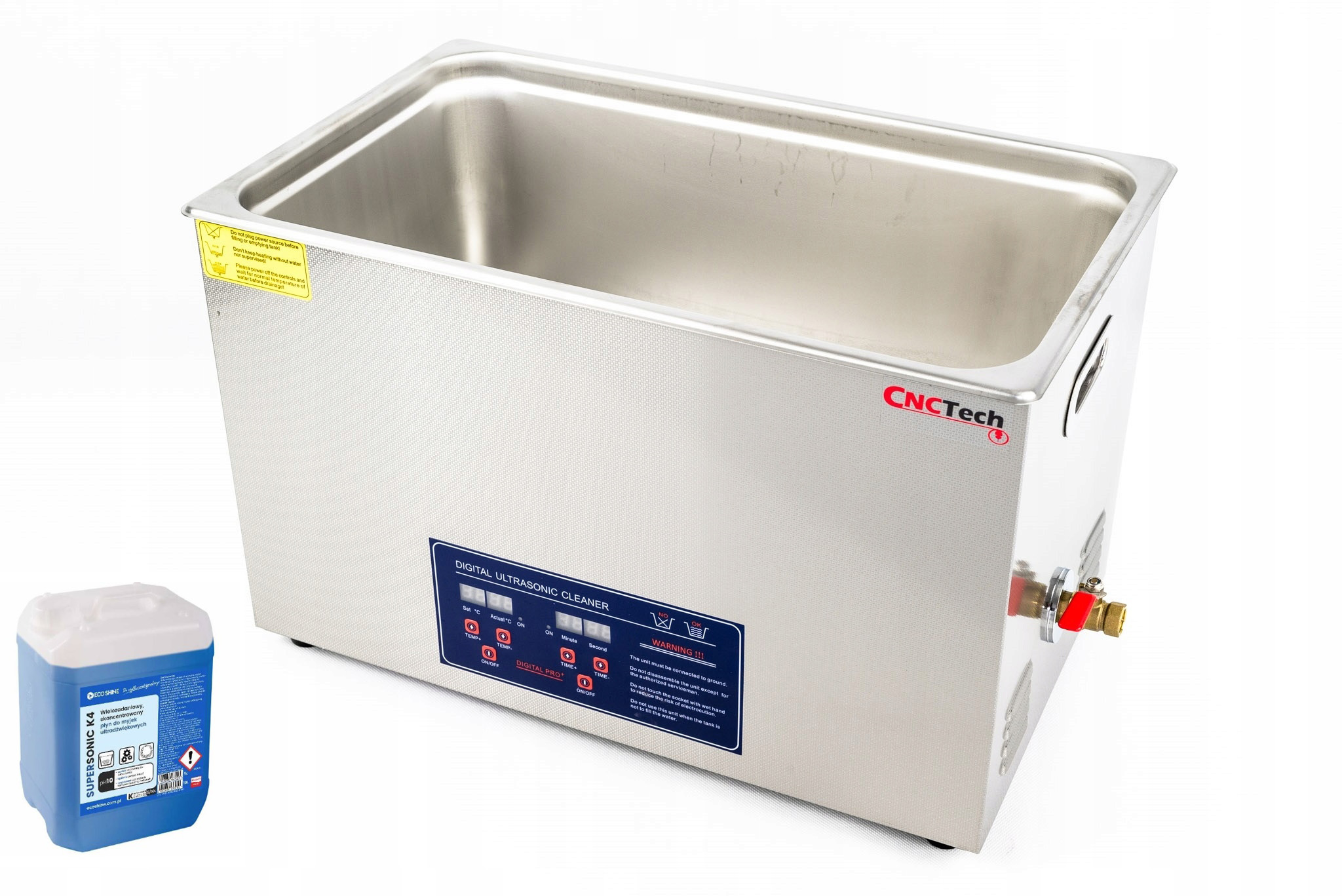 Большой диаметр драйверов обеспечивает лучший результат очистки за счет повышения эффективности. Шайба изготовлена ​​из высококачественной стали. Мы можем установить время работы и температуру, что дает нам полный контроль над процессом очистки, а параметры видны на ЖК-дисплее.