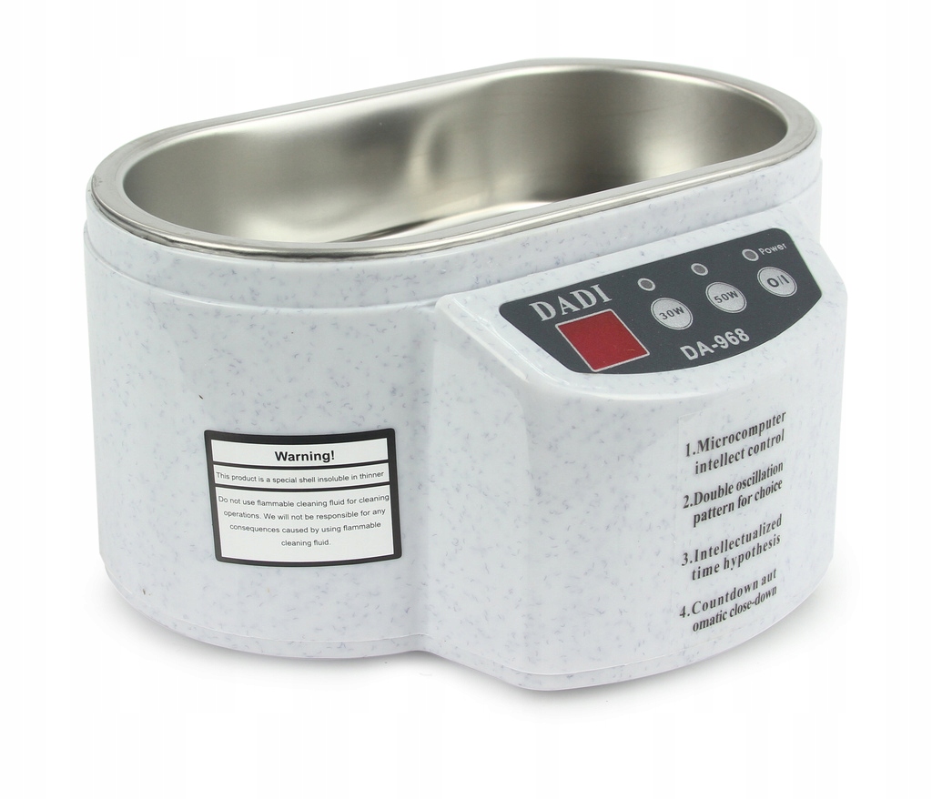 Благодаря генерируемому ультразвуку с частотой до 40 кГц и камере емкостью 500 мл он позволит дезинфицировать даже более крупные предметы, например, инструменты, используемые в косметической или медицинской промышленности! Удобство использования повышается за счет возможности регулировки мощности и времени работы (таймера) от 1 до 60 минут!