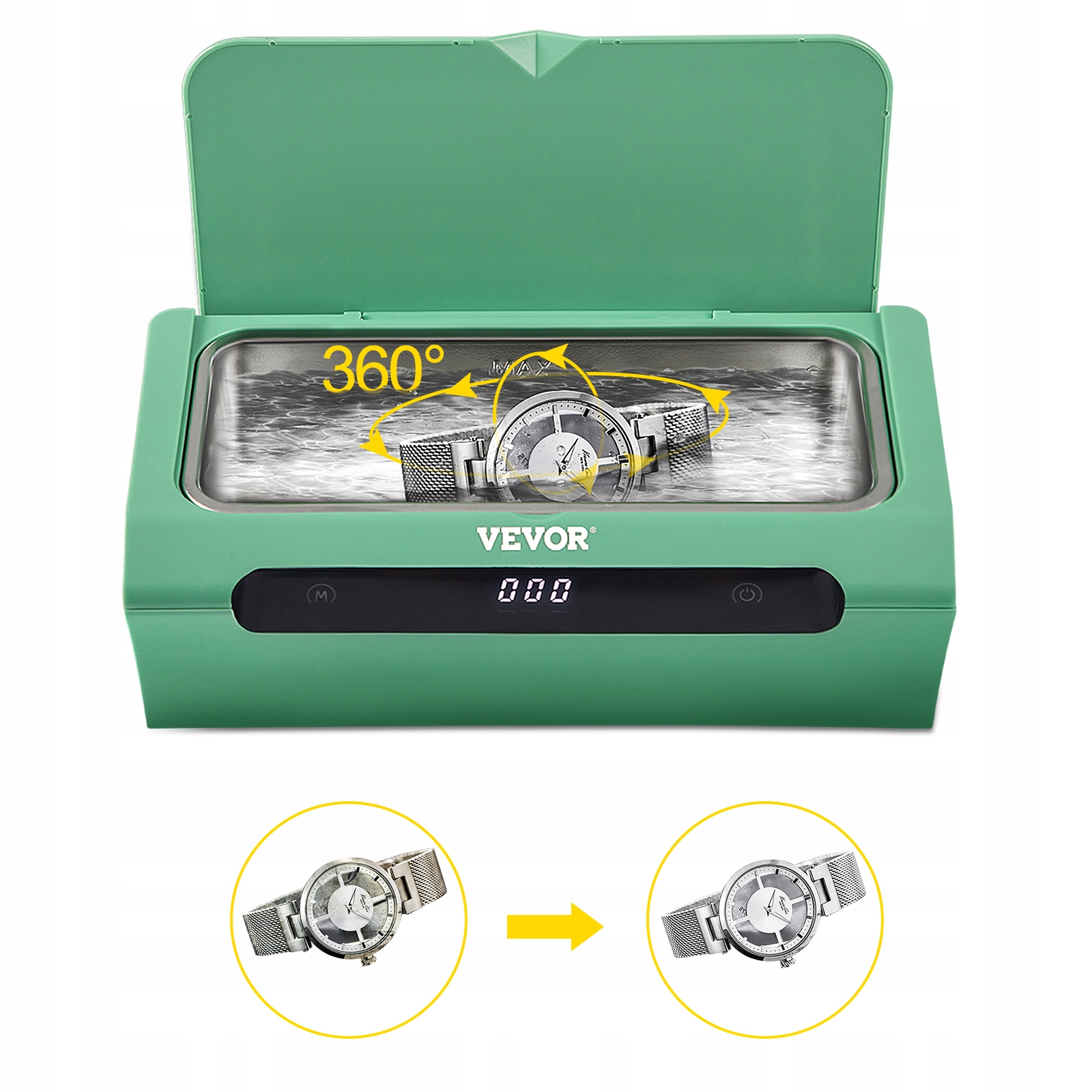 Самая важная функция Мощная способность чистки: oscara с частотой и ультризацией. Ювелирные изделия без усилий отвлекают и разрушают грязь. Создайте объекты, такие как ювелирные изделия, очки, новые часы, как и раньше. Не только безупречно чистые поверхности, но и устраняют глубоко встроенные пятна, восстанавливая их первоначальное великолепие. Офисные кисти, макияж, украшения, протезы для часов. Сложные настройки - просто выберите подходящее время. Маленькие детали, предотвращение движения объектов и обеспечение результатов очистки.