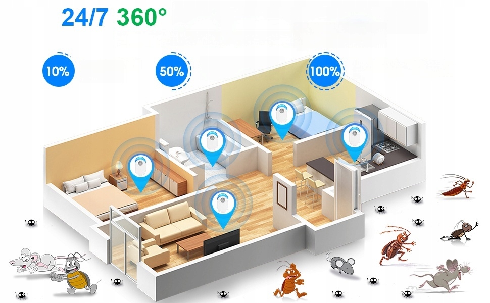 Усовершенствованная ультразвуковая технология: Ультразвуковой репеллент комаров использует новейшую двойную частоту для эффективного сдерживания вредителей с 360 стабильной крышкой для обеспечения максимальной защиты для обеспечения максимальной защиты.