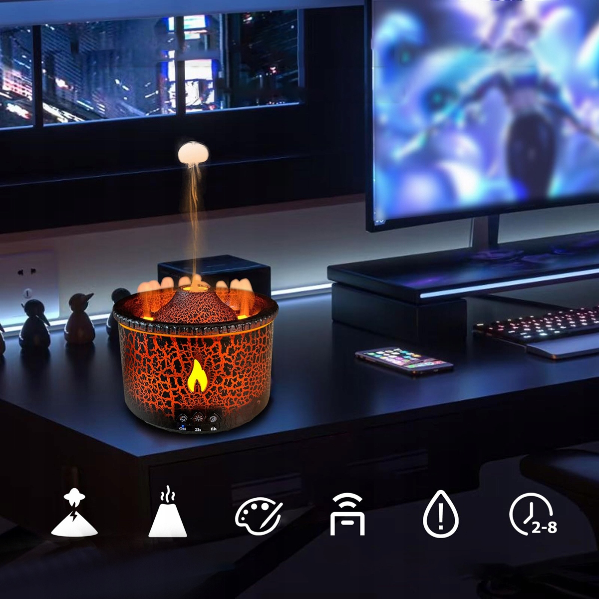 🔥Многофункциональный диффузор эфирных масел для ароматерапии в форме извержения вулкана, как украшение. Его можно использовать в качестве диффузора для ароматерапии, увлажнителя воздуха и атмосферного ночника. Идеально подходит для дома, офиса, студии, тренажерного зала, спа или йоги, а также для дней рождения, Дня святого Валентина, Дня матери, Дня отца, Хэллоуина, Рождества, юбилеев для влюбленных, друзей, семьи и близких. Хороший выбор для сувенирного подарка.