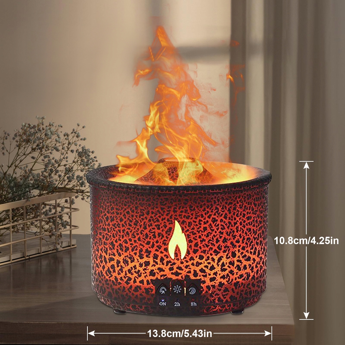 🔥Увлажнитель воздуха изготовлен из безопасного и экологически чистого полипропиленового материала с использованием технологии гальванопокрытия кнопок. Он имеет компактный и портативный дизайн, что позволяет легко носить с собой. Сочетание огней и тумана создает реалистичный эффект пламени, создавая теплую и романтическую атмосферу. Вы можете выбирать между мягким и сильным пламенем.