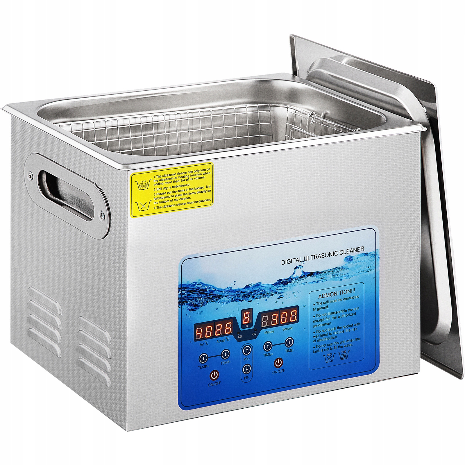 Этот ультразвуковой очиститель деталей изготовлен из антикоррозийной нержавеющей стали 304 и достаточно прочен, чтобы прослужить долгие годы. Резервуар объемом 15 литров достаточно велик, чтобы вместить украшения, очки, часы или зубные протезы. В комплект входит шумоподавляющая верхняя крышка и корзина для чистки предметов, требующих меньшего трения.