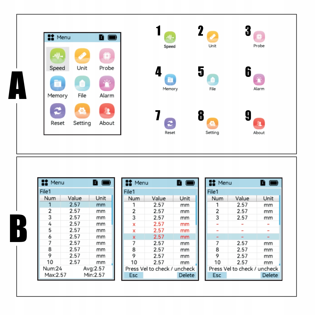 - диаграммы данных — вы можете создавать диаграммы данных, которые можно читать для анализа непосредственно на устройстве, на экране или в специальном компьютерном программном обеспечении.