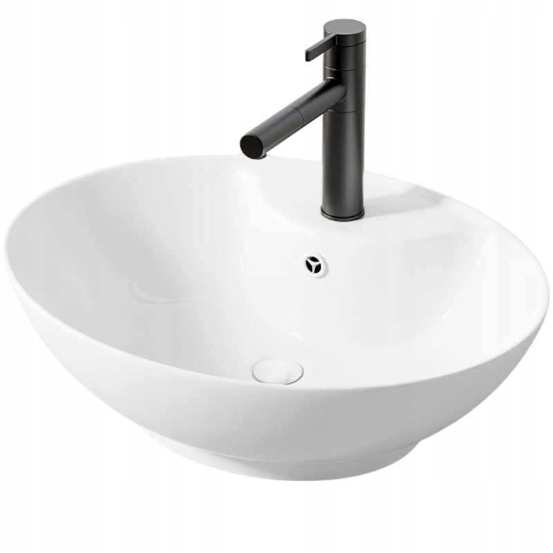 ОВАЛЬНАЯ КЕРАМИЧЕСКАЯ РАКОВИНА НА СТОЛЕНЕ, БЕЛАЯ, ГЛЯНЦЕВАЯ, С ОТВЕРСТИЕМ ДЛЯ ПЕРЕЛИВА