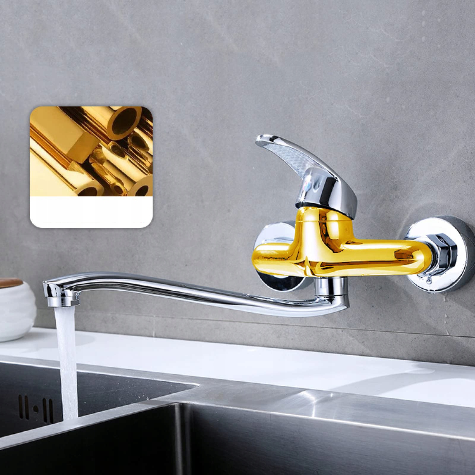 - 💧 【Настенный кухонный смеситель】:Управление одной рукой Ручной, легкий контроль температуры воды и скорости потока. Латунная конструкция кухонного смесителя обеспечивает высокое качество и длительный срок службы.