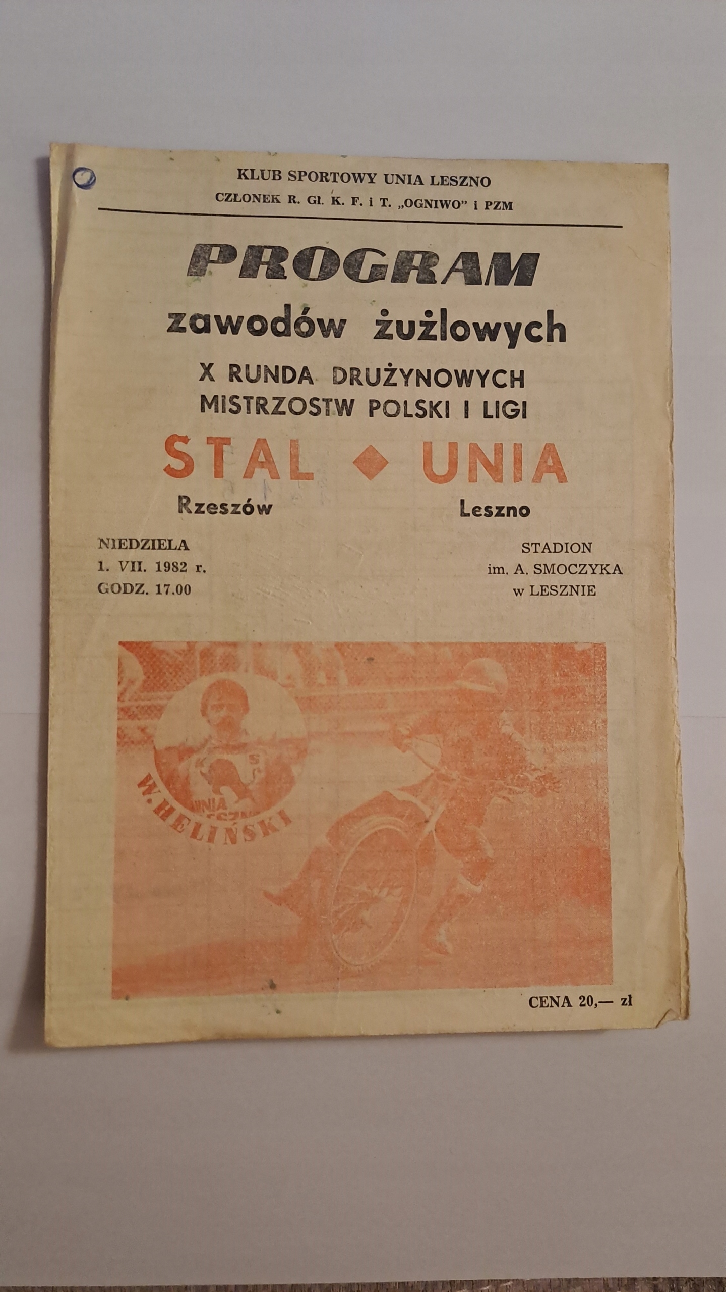 Unia Leszno - Stal Rzeszów 01-07-1982 - программа Speedway заполнена