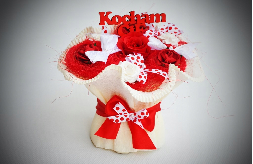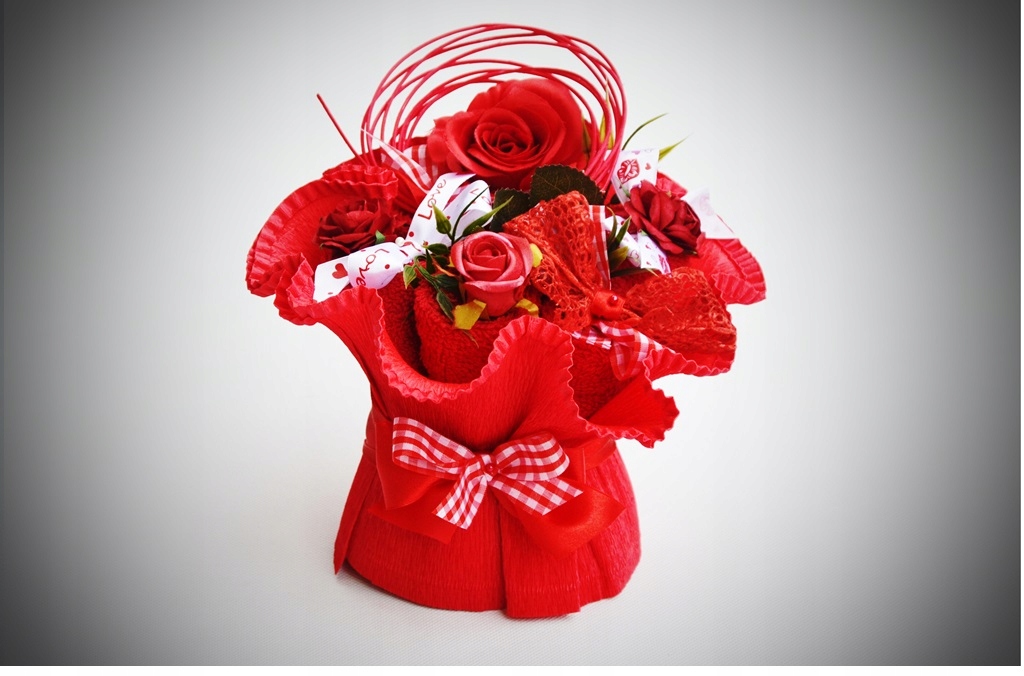 - Букет ко Дню святого Валентина из полотенец с выбранным узором,