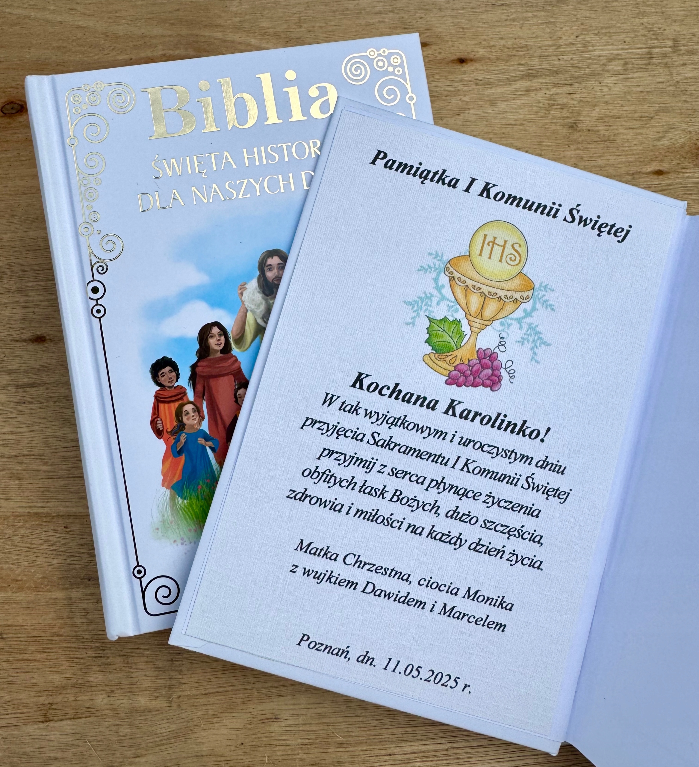 Просматривая «Уникальный дар для первой Библии Святого Причастия, проиллюстрированной посвящением сувенира», вы можете быть уверены, что данный товар из каталога «[rubrica_name]» будет доставлен из Польши и проверен на целостность. В цене товара, указанной на сайте, учтена доставка из Польши. Внимание!!! Товары для Евросоюза, согласно законодательству стран Евросоюза, могут отличаться упаковкой или наполнением.