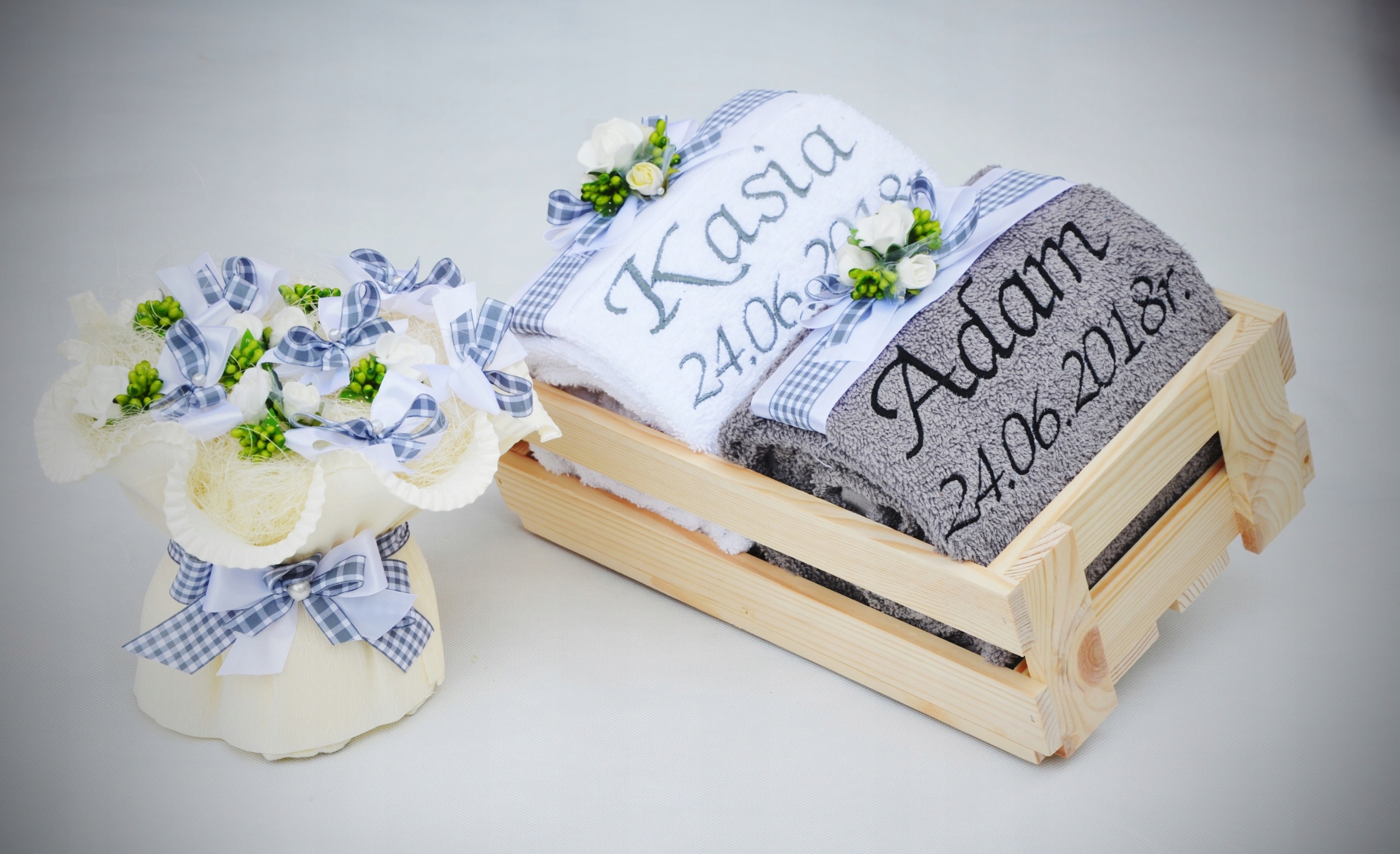 - украшение на полотенцах, выполненное квалифицированными флористами с использованием флористики высочайшего качества аксессуары,