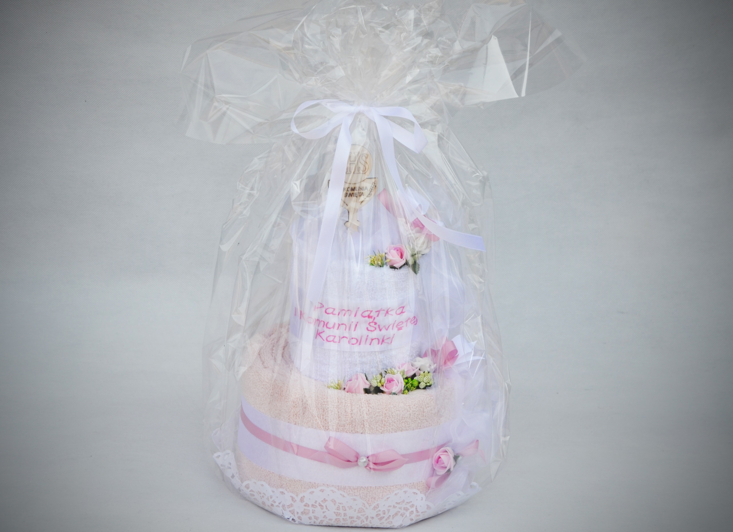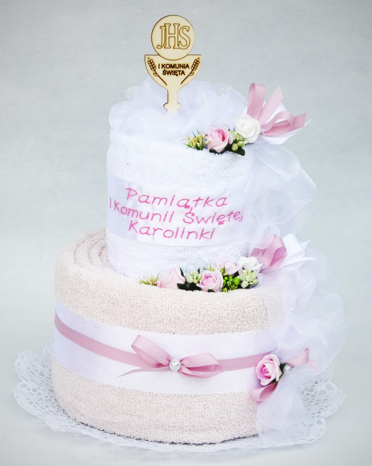 Предлагаем Вам купить оригинальный подарок – торт для причастия из полотенец – удивите каждого необыкновенным подарком. Он красив, как букет цветов, но будет радовать глаз гораздо дольше.
