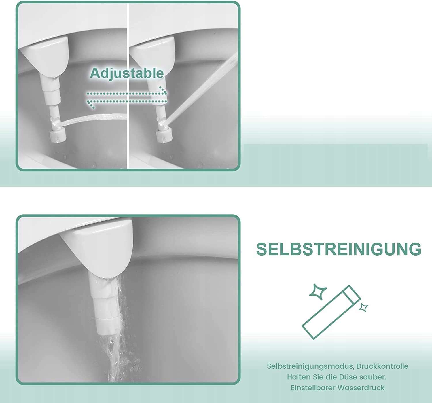 - Улучшенная конструкция насадки для биде подходит для унитаза и идеально интегрируется в большинство стандартных унитазов.