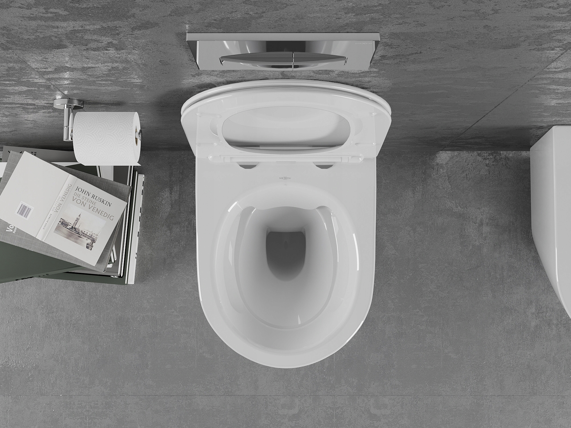 - Технология Rimless обеспечивает свободный поток воды по всей камере, что облегчает поддержание чистоты унитаза.