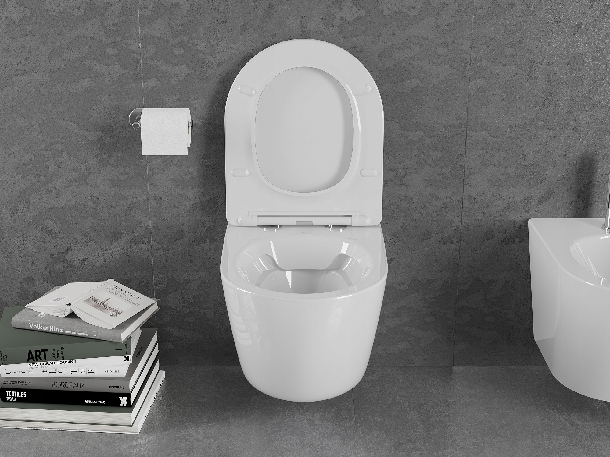Унитаз Mexen Lena без оправы с плавно закрывающимся тонким сиденьем из дюропласта, белый