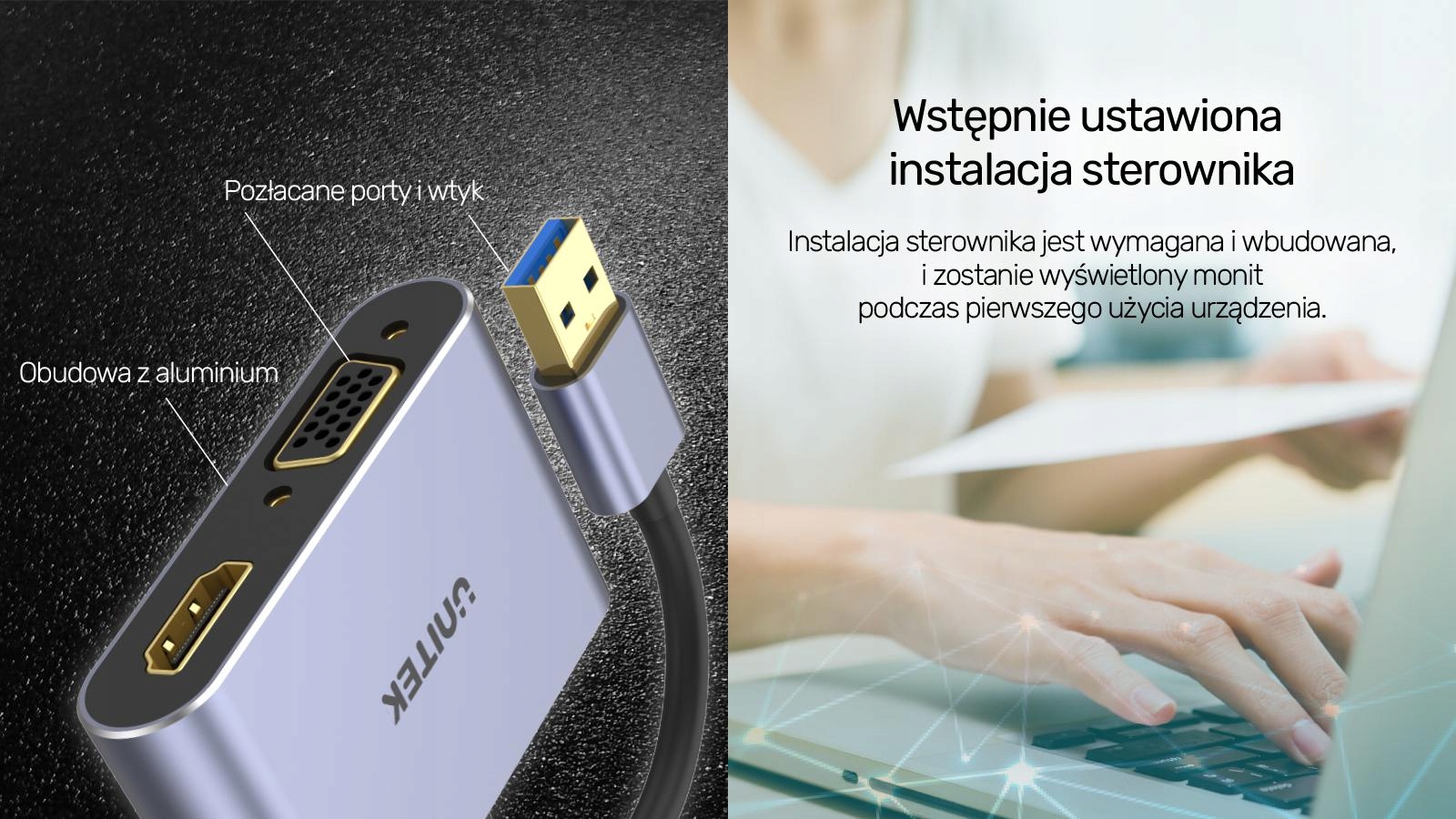 Unitek USB-A — HDMI и VGA, адаптер FullHD