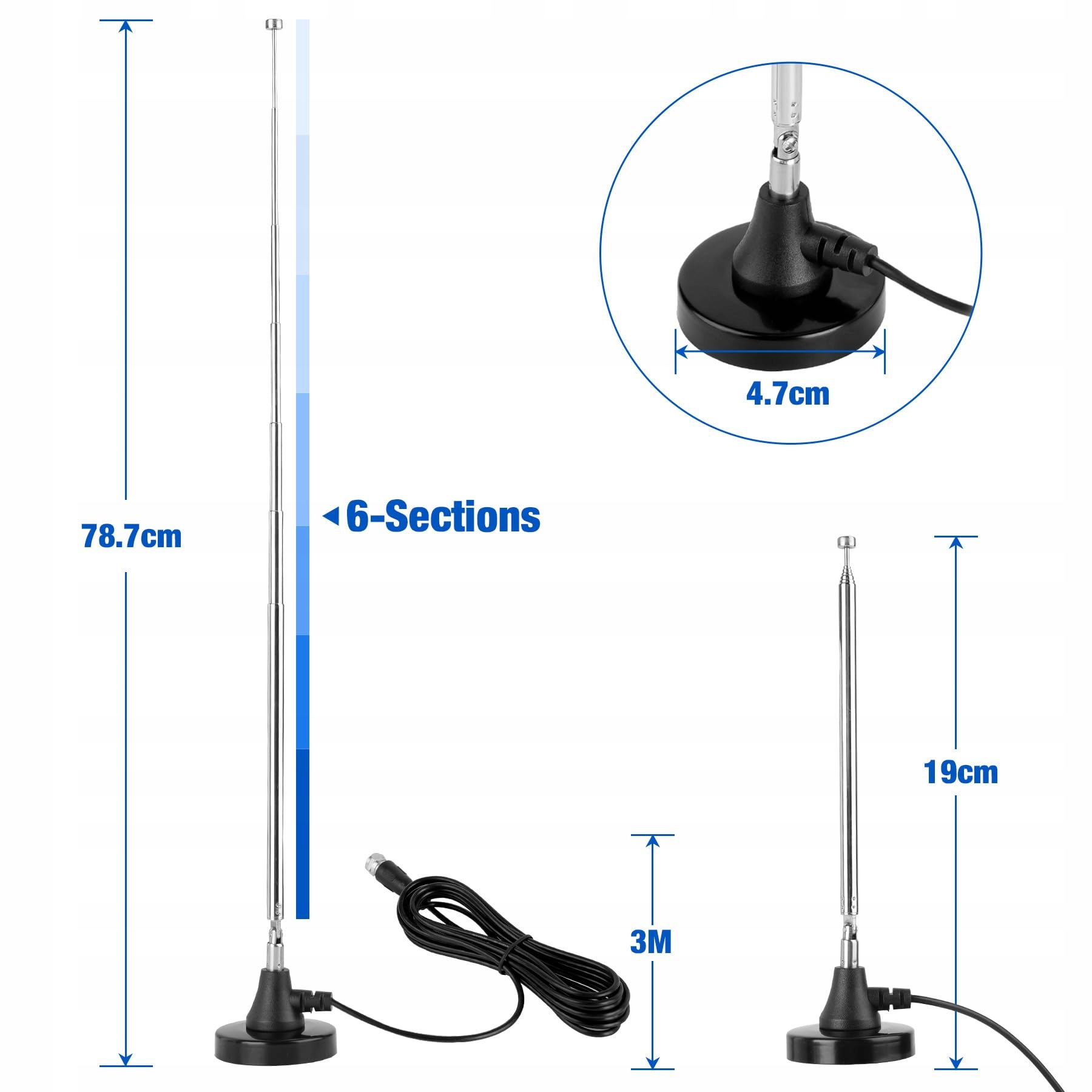 Dab FM -радио антенна цифровой телескопической антенны для внутреннего использования с помощью магнитного базового удлинительного кабеля 3 M, для внутреннего использования радиоантенны Dab FM, к радионсерскому тюнеру FM 75 Ом, стерео -стерео -приемник стерео hifi h2>