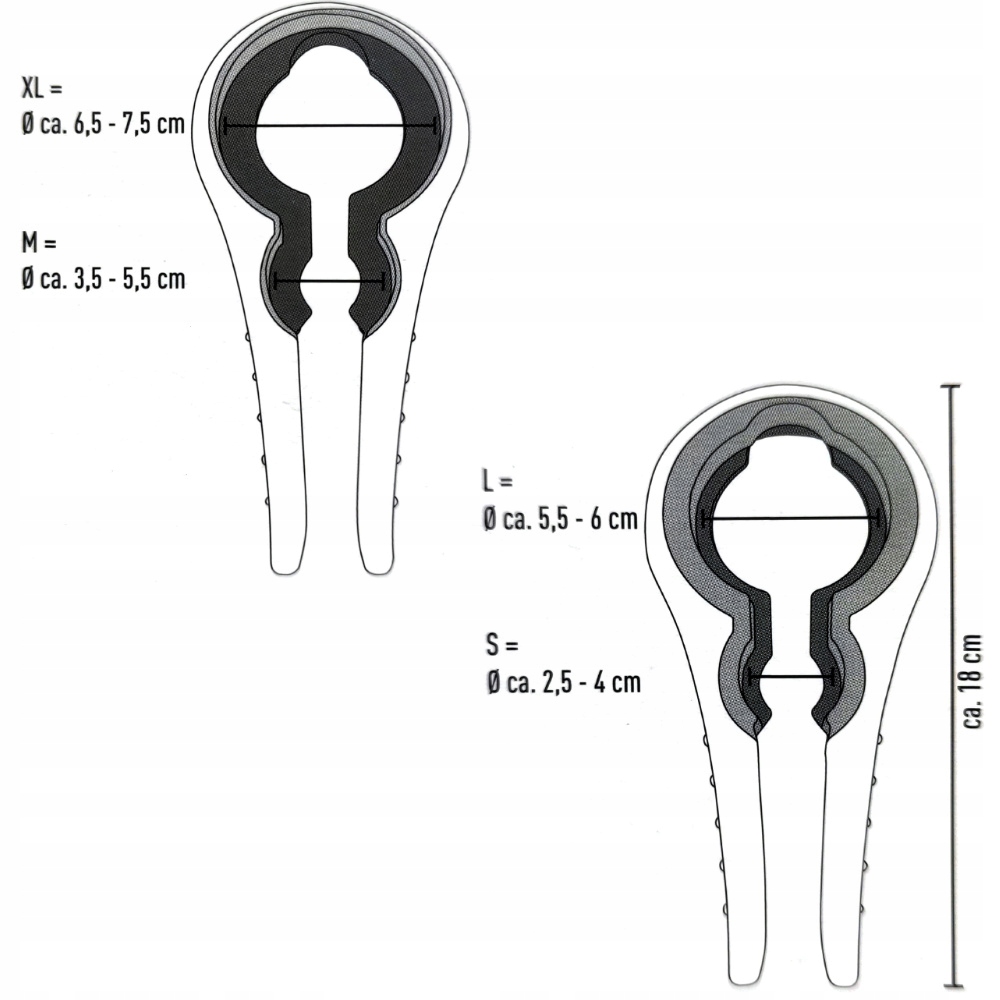 - XL: 6,5 - 7,5 см.