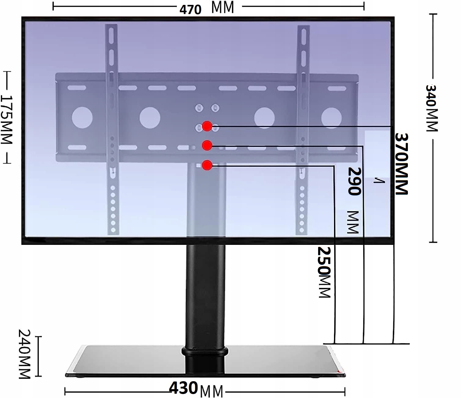 Если вы не можете найти подставку для телевизора или она повреждена или неустойчива, это идеальное решение. Наша подставка изготовлена из стали, что делает ее очень устойчивой даже для телевизоров весом 35 кг. Он обеспечивает широкую совместимость с креплениями VESA до 600 x 400. Важно отметить, что вы также можете регулировать высоту этой подставки для телевизора. Наше основание также используется, когда ваш стол/шкаф для телевизора узкий и вам нужен центральный метод крепления вместо крайних ножек телевизора.