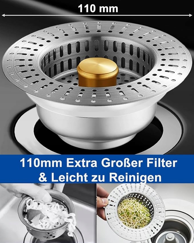 - ВЫСОКАЯ СОВМЕСТИМОСТЬ Пробка кухонного фильтра подходит к сливным отверстиям диаметром 75-86 мм и глубиной более 40 мм, поэтому подходит к большинству популярных моек. Корзину фильтра можно легко снять и установить без инструментов. Пожалуйста, измерьте размер перед покупкой.
