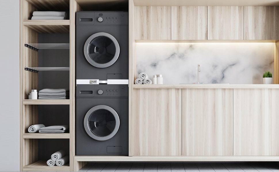 - Универсальный набор подходит для всех стиральных машин и барабанных сушилок, доступных на рынке с шириной 46-72 см. Установите барабанную сушилку на стиральной машине, чтобы сэкономить еще больше места.