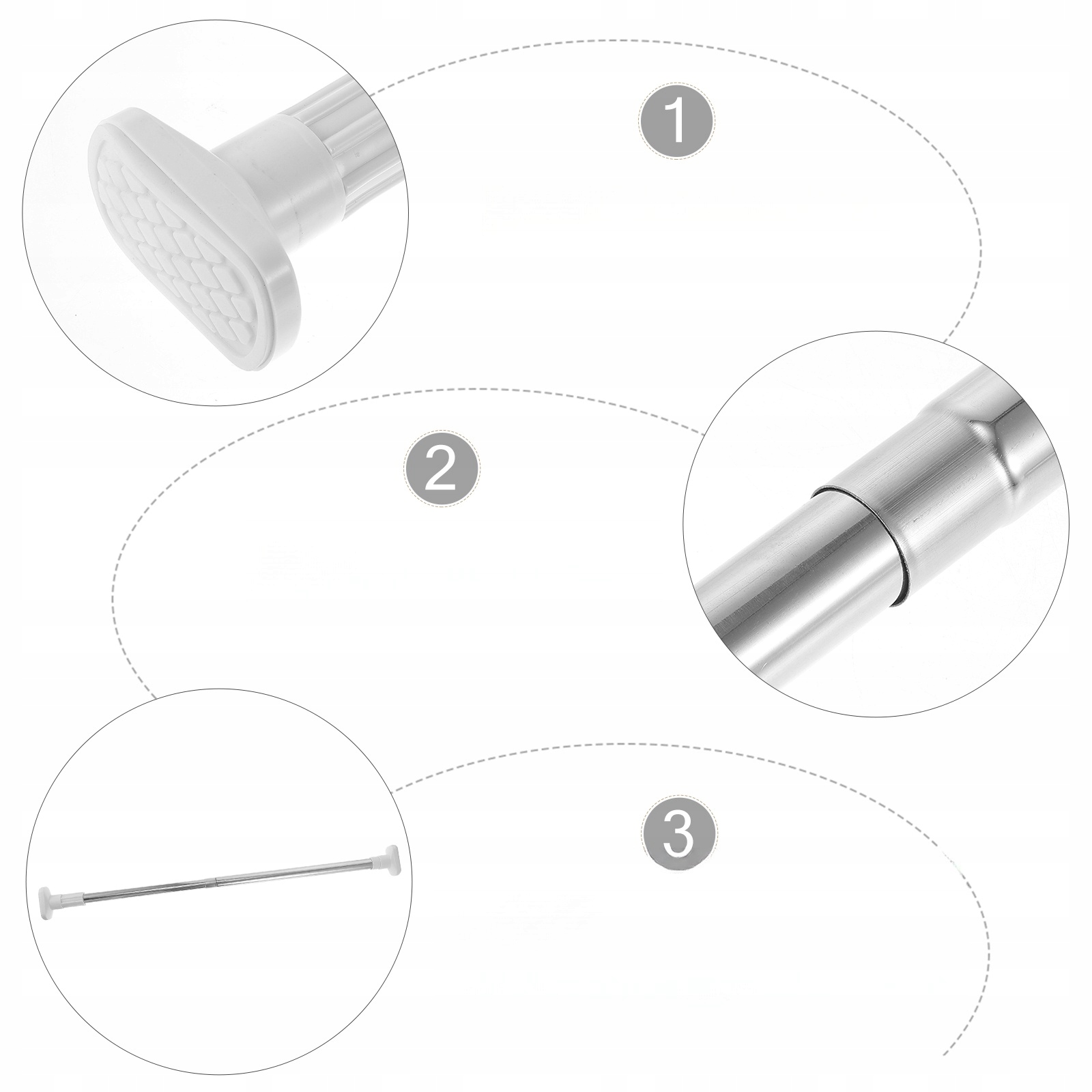 ✅Простота установки, просто растяните стержень до тех пор, пока его можно будет прочно закрепить на обеих стенах.