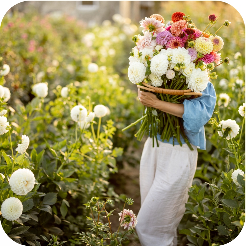 хризантема, пион, ирис, тюльпан, анютины глазки, георгин, подсолнечник, цинния, гвоздика, левония, гладиолус
