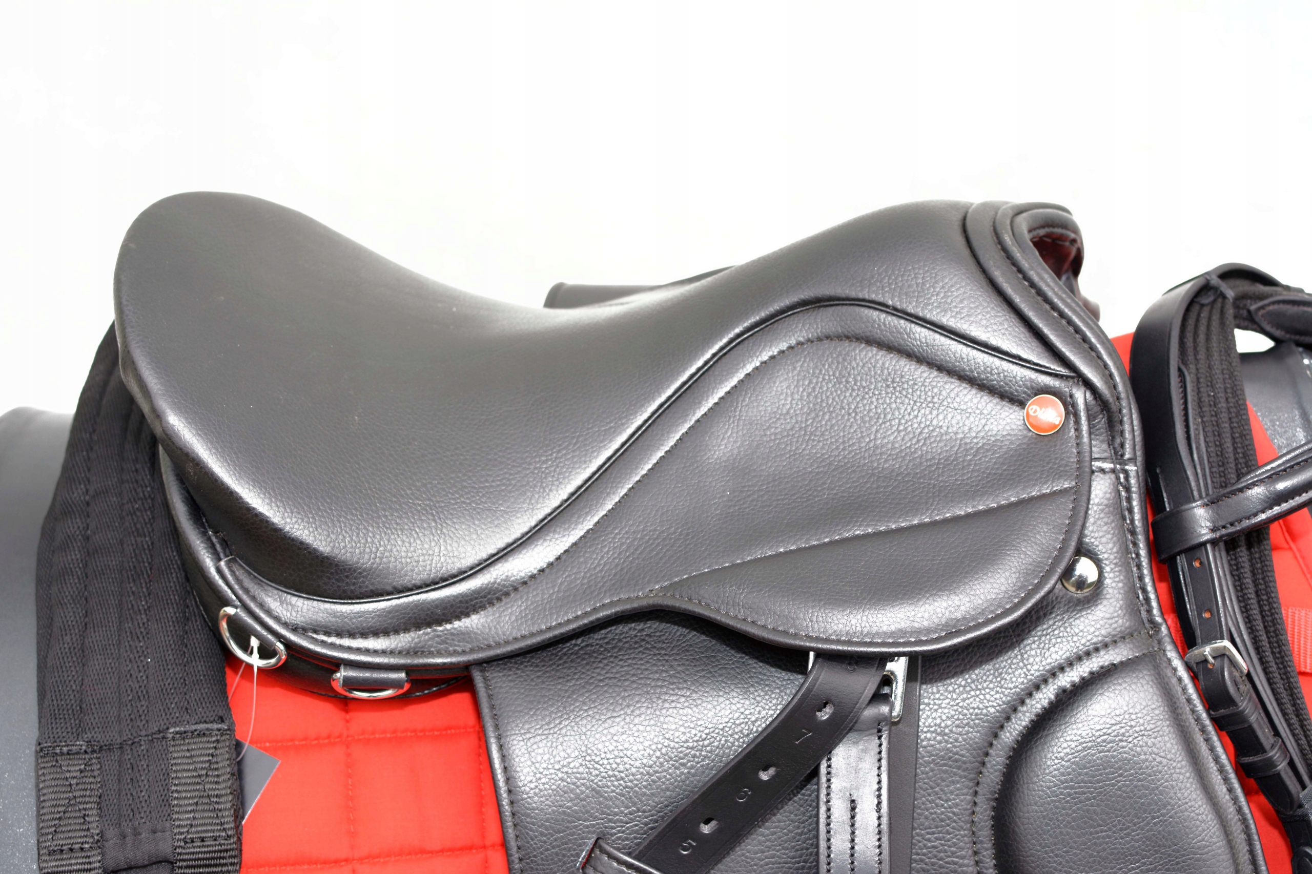Полное 13-дюймовое универсальное седло для пони, выполненное полностью из материалов очень хорошего качества, седло очень легкое. Сделано на шорной фабрике в Англии. Седло имеет легкую конструкцию, дерево сконструировано таким образом. Благодаря тому, что бедра и особенно тазобедренные суставы не подвергаются ненужным нагрузкам, оптимально расположенный центр позволяет всаднику правильно сидеть. Коленный блок.Единственная модель седла данного типа по такой низкой цене.Седло включает в себя уздечку+поводья, стремена, седельную ткань, седельную ткань и подпругу.
