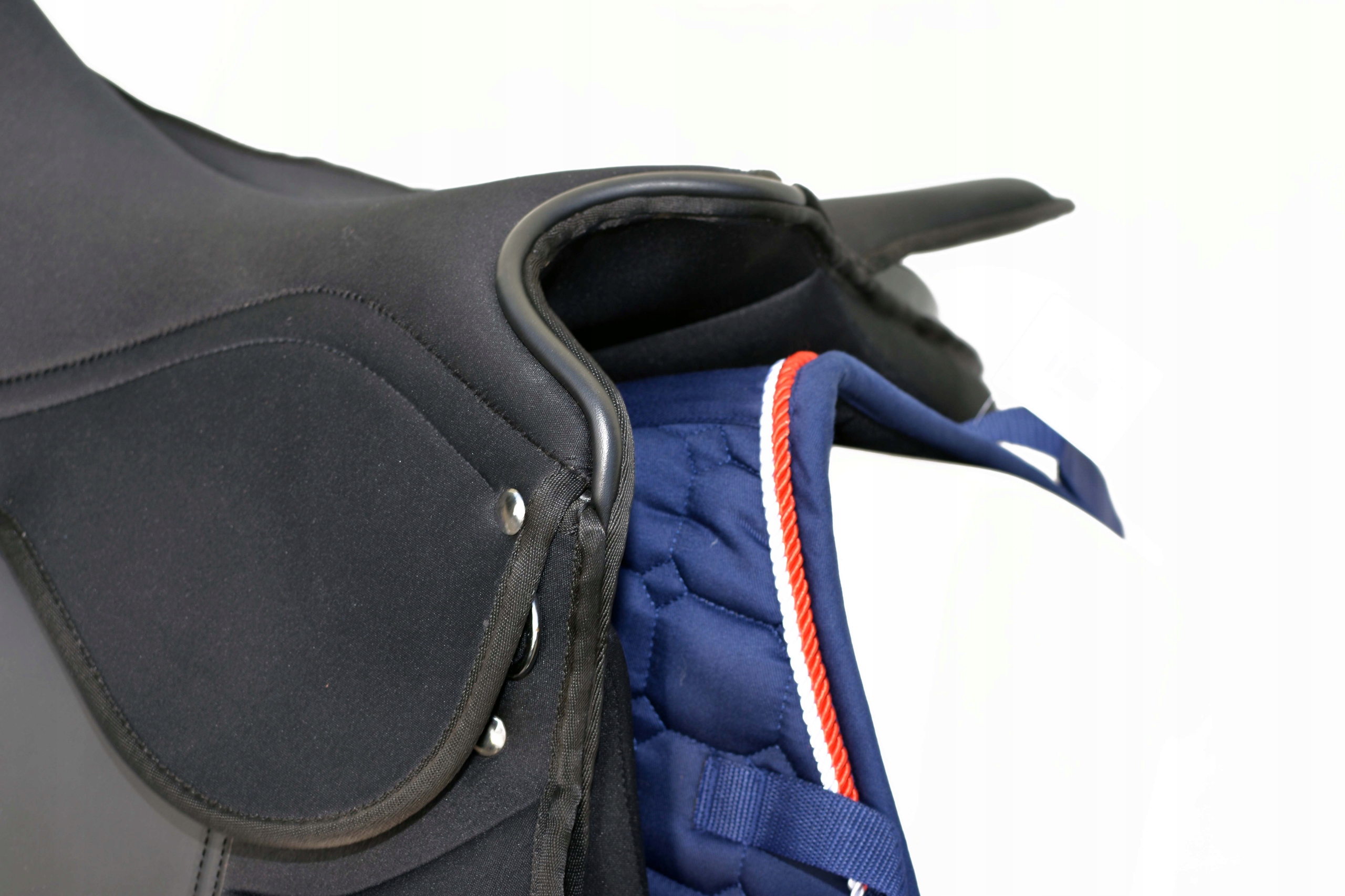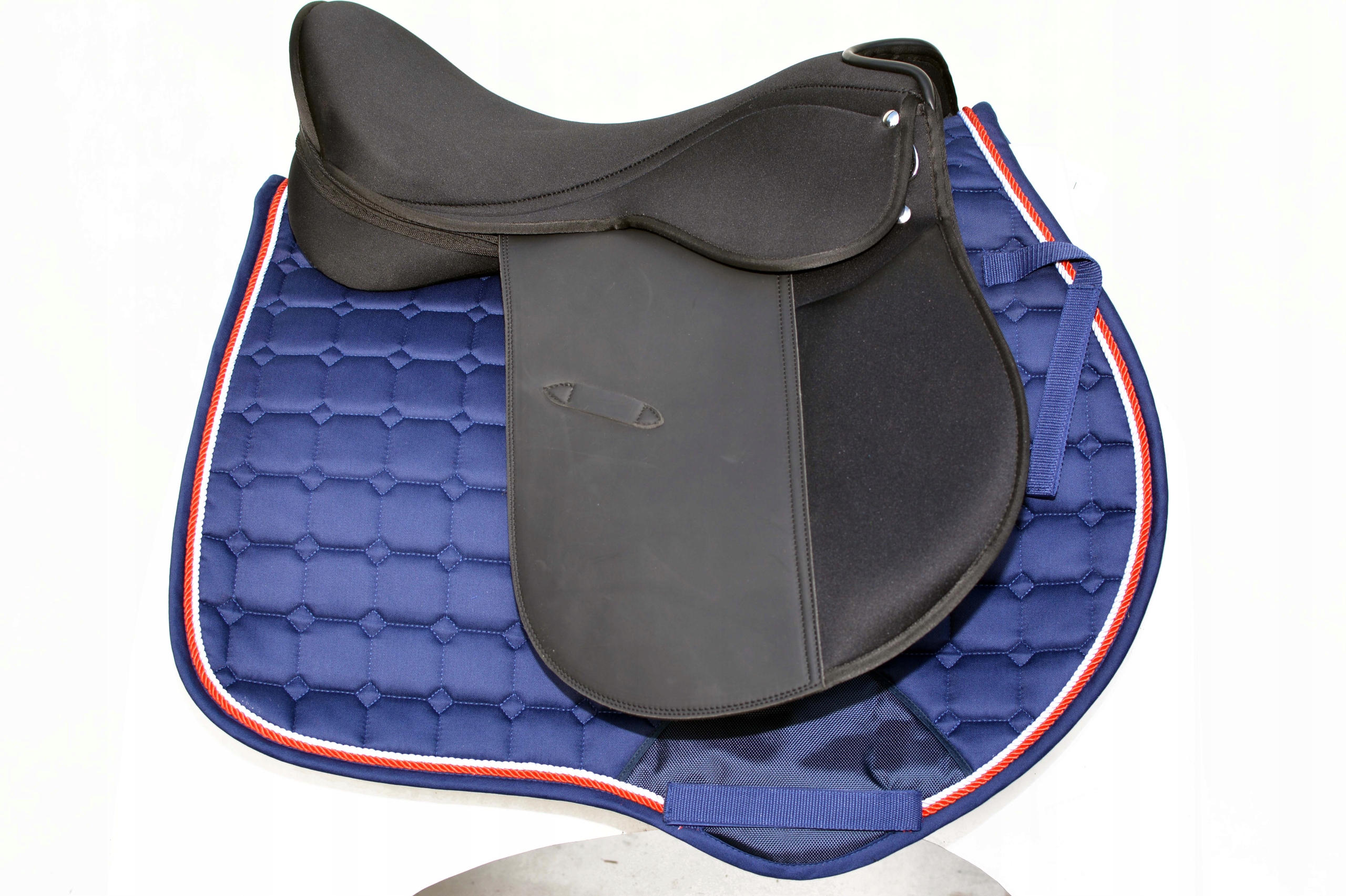 Универсальное 18-дюймовое седло. Сделано полностью из очень хороших материалов, седло очень легкое. Сделано на шорной фабрике во Франции. Седло имеет легкую конструкцию, дерево сконструировано таким образом, что бедра и особенно. тазобедренные суставы не подвержены лишним нагрузкам, оптимально расположенная мера позволяет всаднику правильно сидеть. Коленный блок крепится прочной липучкой для регулировки, вырезан под холку лошади, единственная модель седла по такой низкой цене.