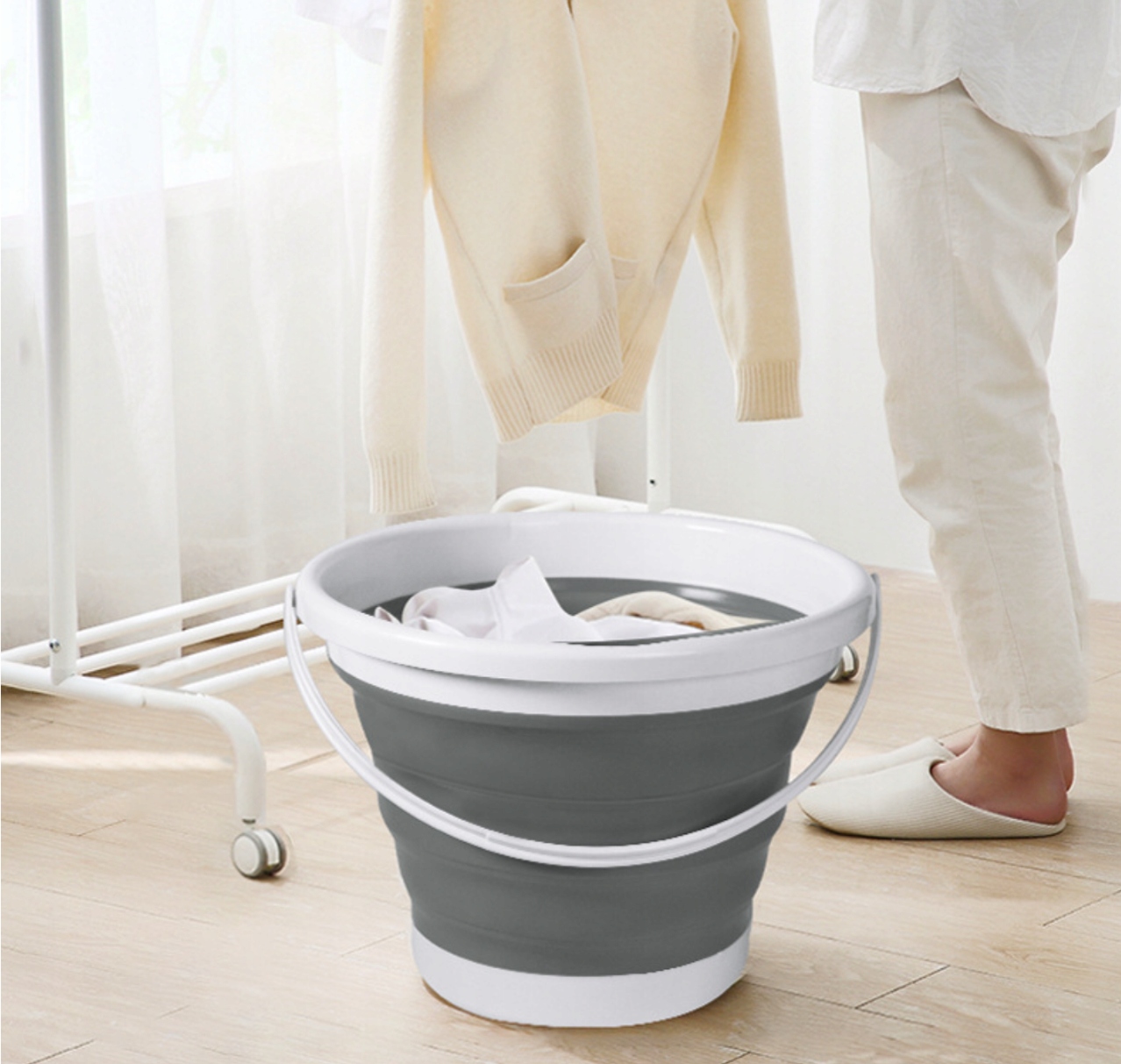 Ведро универсальное, идеально подходит для использования дома, в путешествии или походе, для стирки, хранения вещей или даже как сосуд для сбора фруктов.