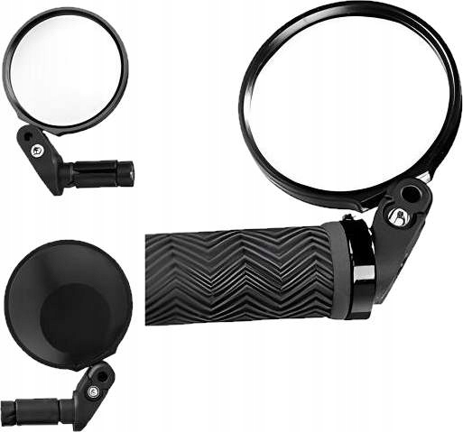 Зеркало велосипеда прикреплено к рулевому колесу, с клином , который подходит для каждого рулевого колеса (16-22 мм). Само зеркало может быть установлено под углом и повернуто на 360 градусов. корпус изготовлен из acryla , а само зеркало изготовлено из стекла .