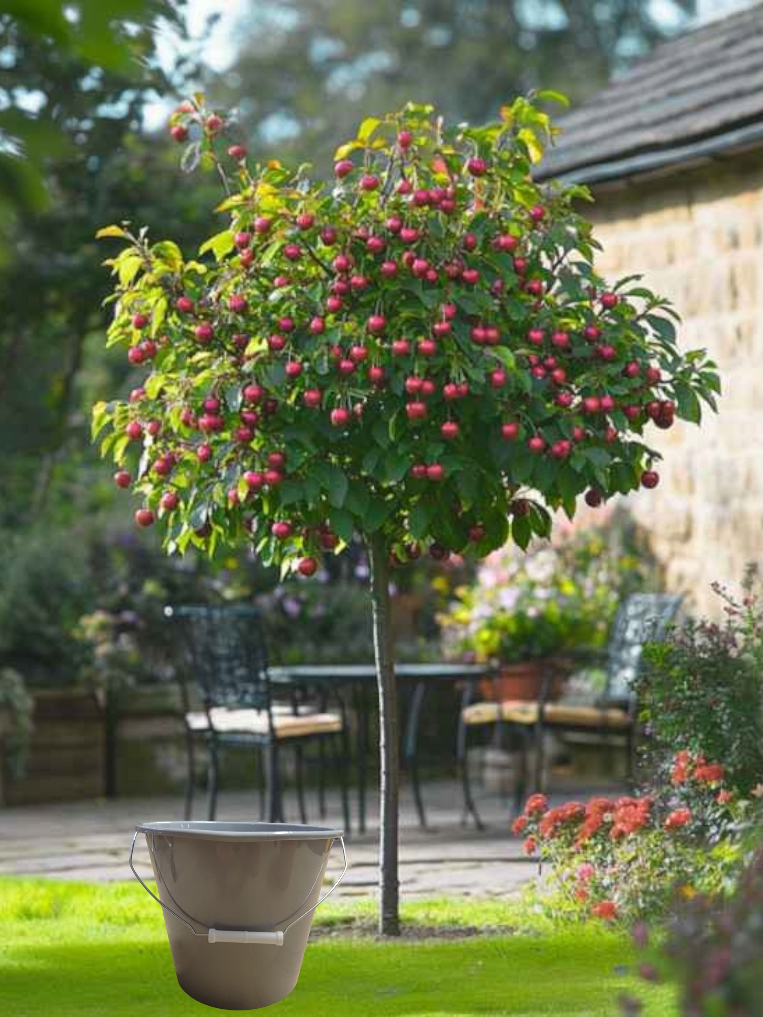- для сбора фрукта - внутри.- имеет прочную металлическую ручку, которая облегчает перенос