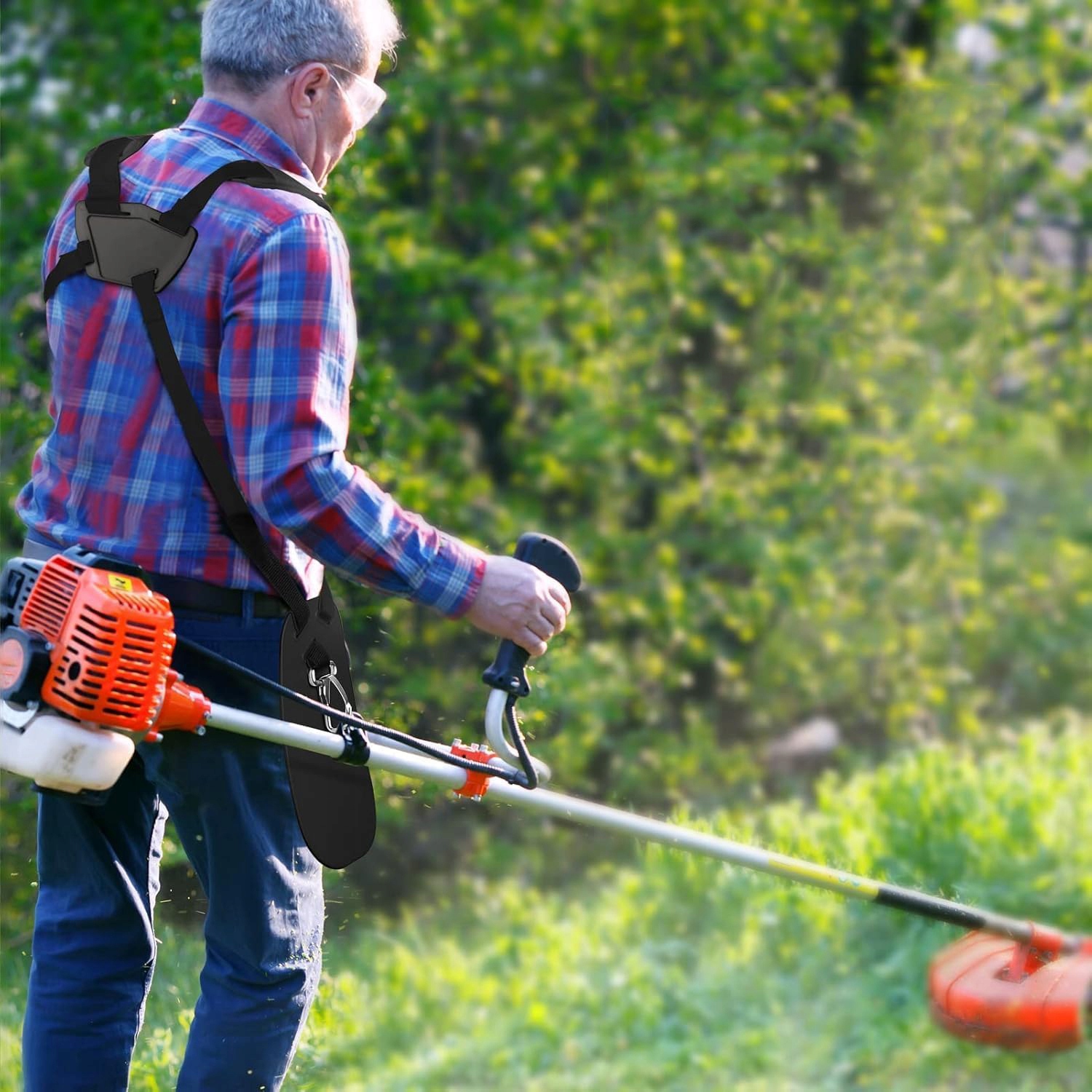 Двойной, стандартный дизайн плеча снимает руки, запястья и распространяет вес триммера в плечи и спину, а эргономичный дизайн делает вас более расслабленным во время колебаний.