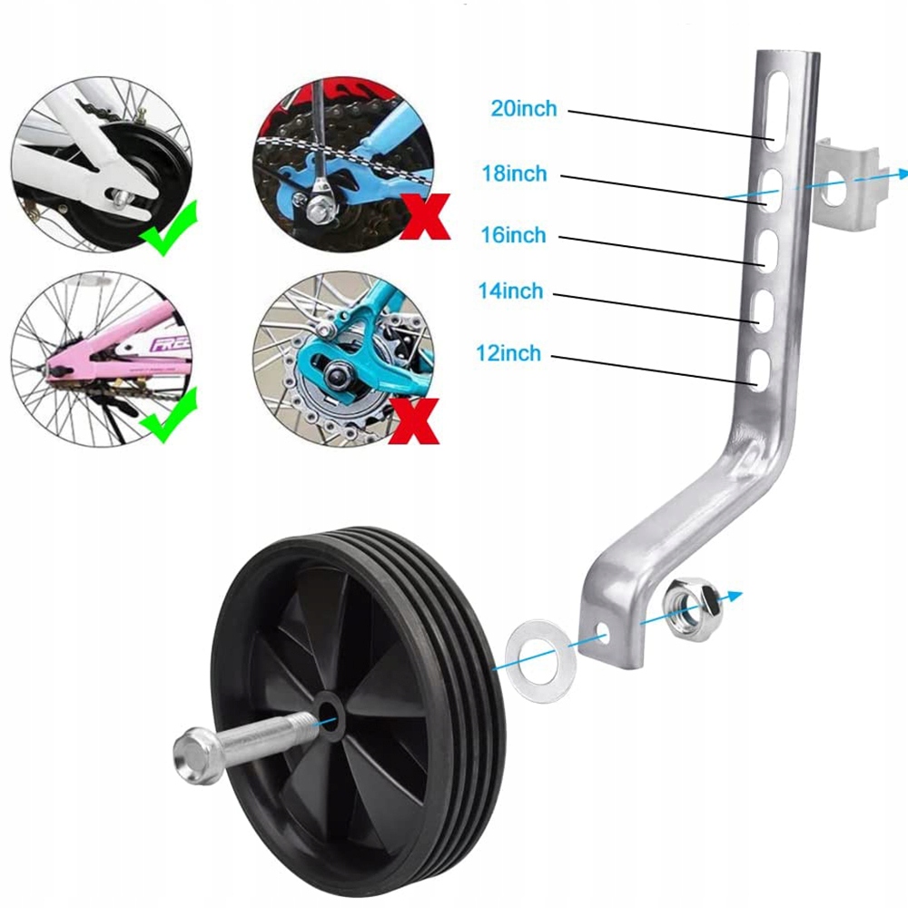 Наши стабилизаторы легко устанавливаются и поставляются с различными аксессуарами. Просто закрепите стабилизаторы с помощью кронштейнов, чтобы ваши дети могли безопасно пользоваться велосипедом. Стабилизатор этого детского велосипеда регулируется.