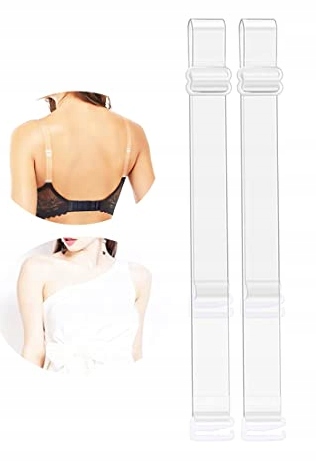 Прозрачные силиконовые ремешки с металлическими крючками — идеальное решение для топов и футболок с непокрытой спиной. Бретели можно легко прикрепить к любому бюстгальтеру со съемными бретелями.