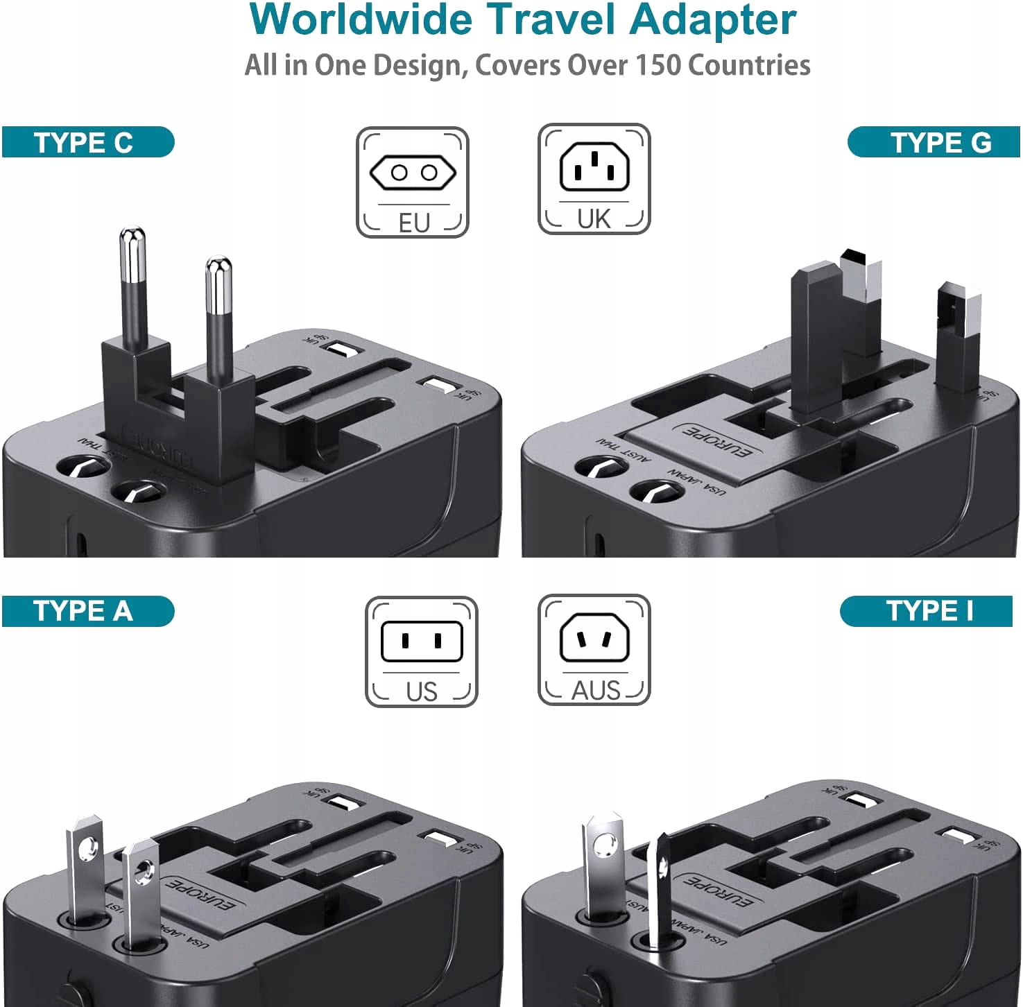 Адаптер, универсальный адаптер питания с двумя USB-розетки позволяют подключать английские, американские, японские, европейские электроприборы к английским, американским, японским, европейским электрическим розеткам.