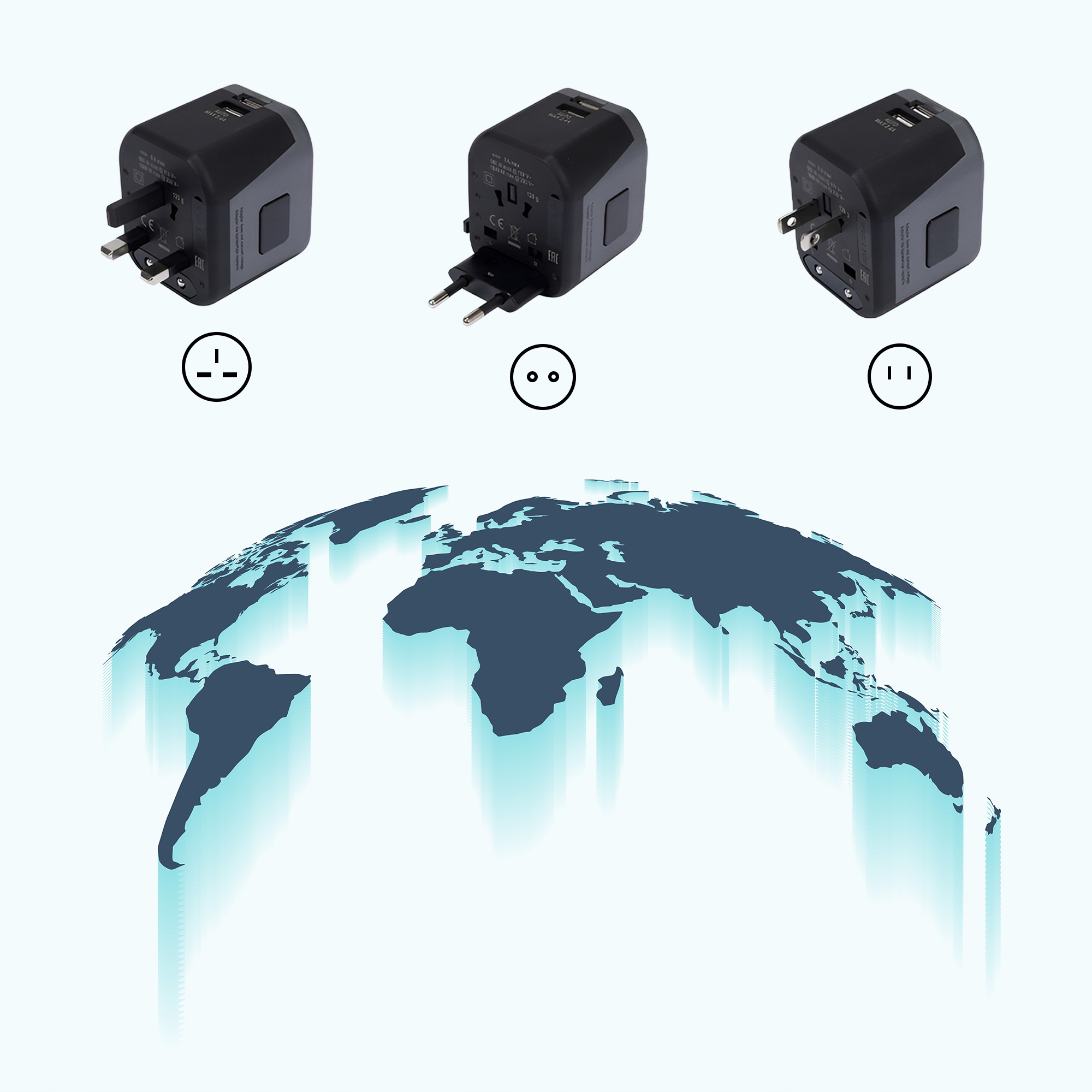 Ваше надежное решение во время путешествий по всему миру. Совместим с розетками более чем в 150 странах. Подходит для розеток Европы, Америки, Азии и многих других регионов мира.