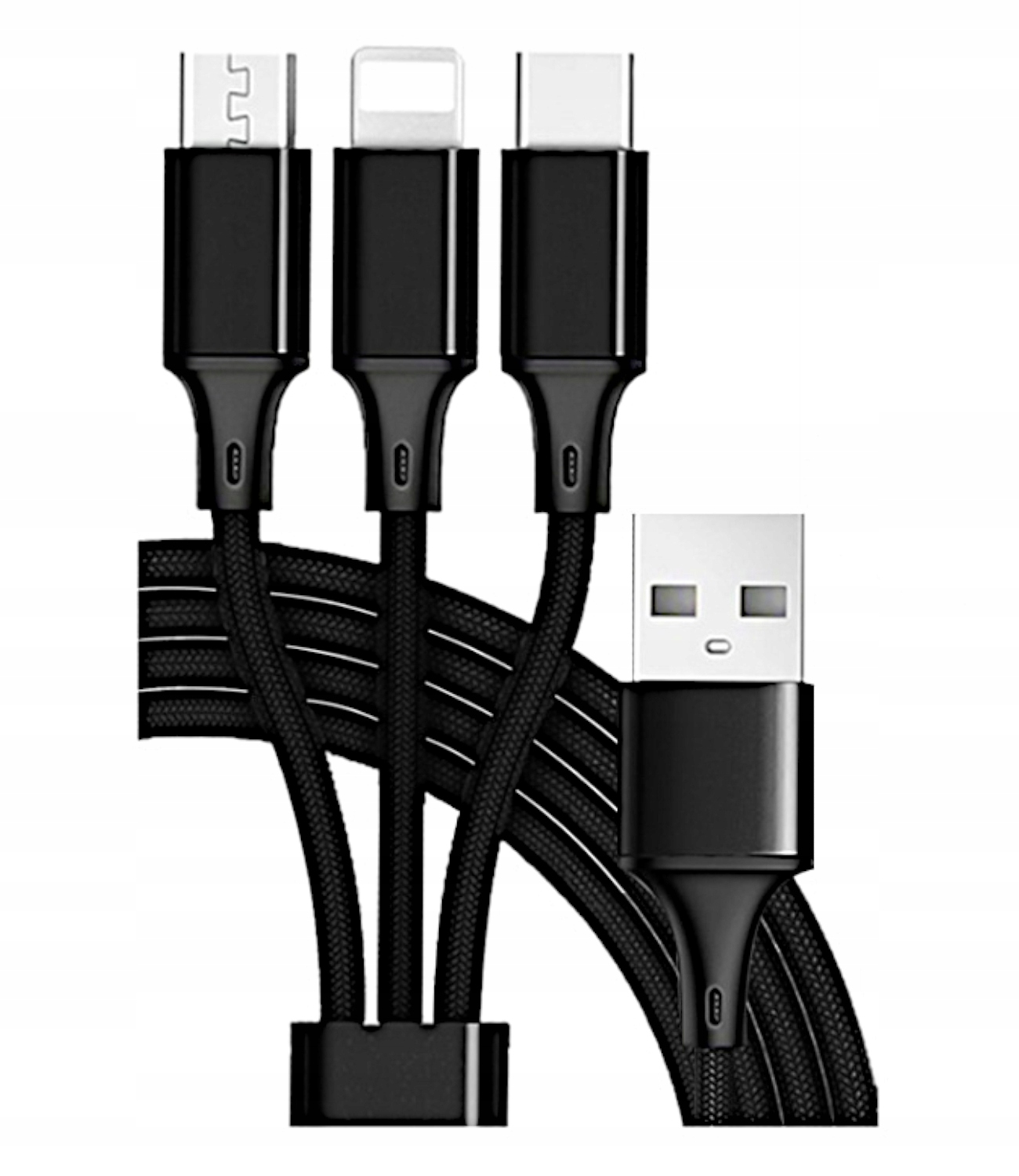 Прочный кабель 3-в-1 с нейлоновой оплеткой длиной 120 см для зарядки всех устройств