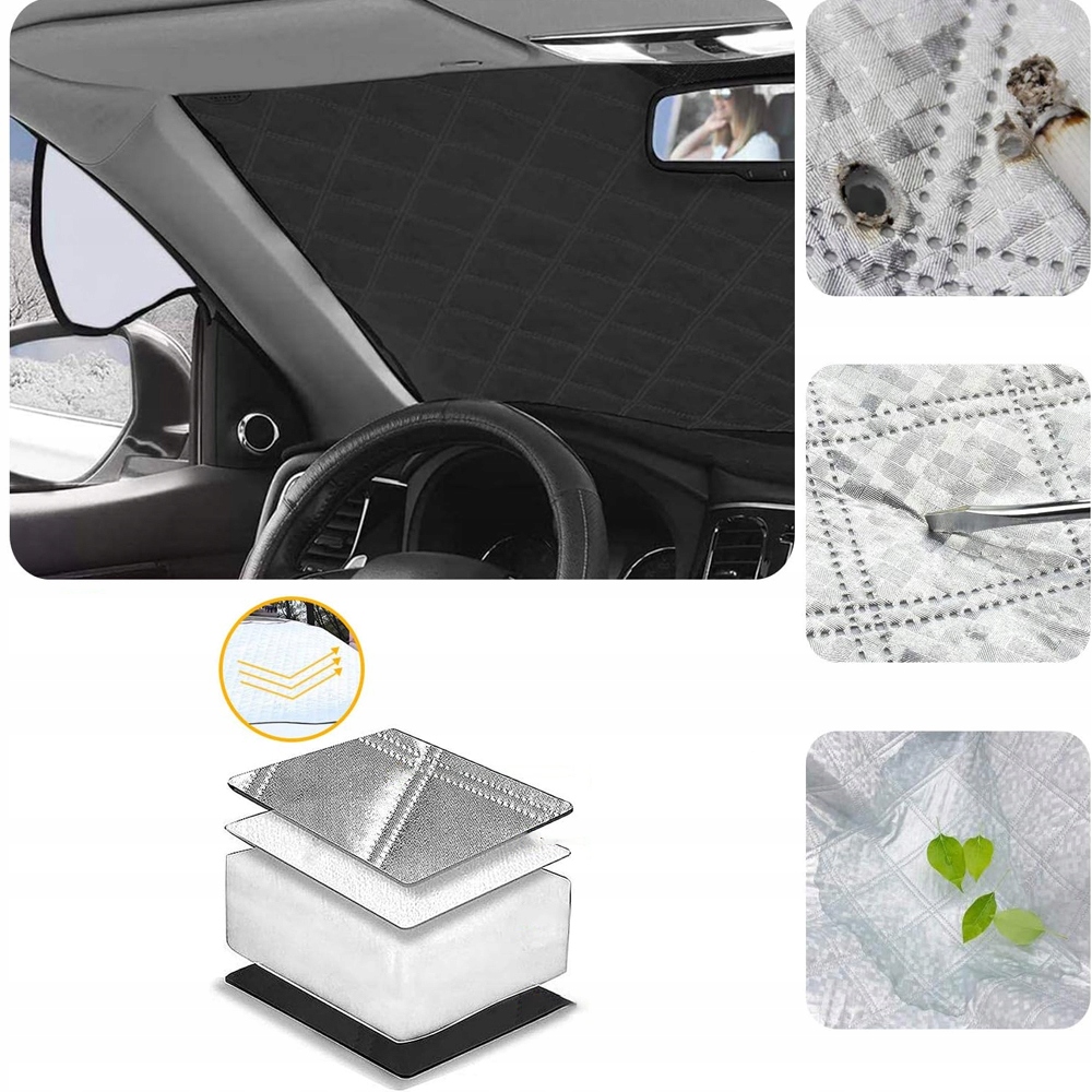 Этот чехол на лобовое стекло автомобиля изготовлен из 4-х слойного композитного материала, сверхтолстый, с двухсторонним алюминиевым покрытием, устойчив к высоким и низким температурам, воде, ветру и разрыву.