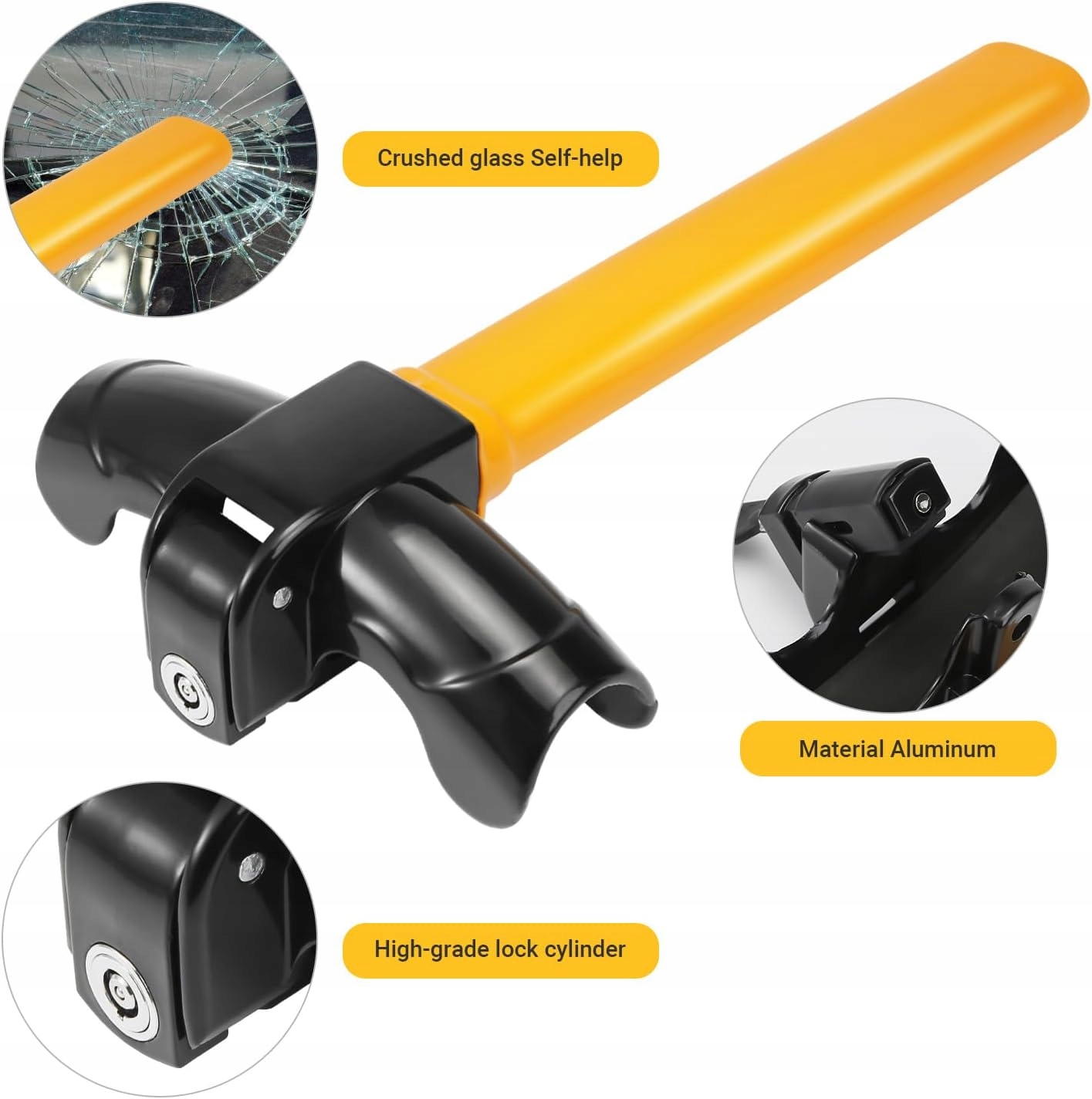 Коготь рулевого колеса изготовлен из прочной стали, а замок рулевого колеса — из латуни. Оба материала прочные и надежные.