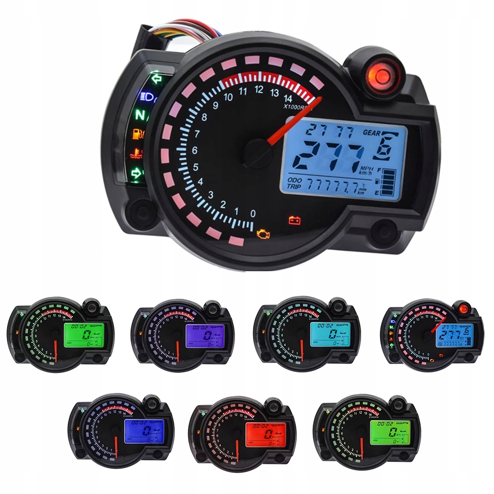 Предметом предложения является универсальный цифровой одометр, подходящий для большинства мотоциклов, мотокроссовых велосипедов и других транспортных средств, оснащенных двигателями от 2 до 4 цилиндров. Часы отображают все необходимые параметры и показатели автомобиля. Дополнительно часы позволяют менять цвет подсветки.