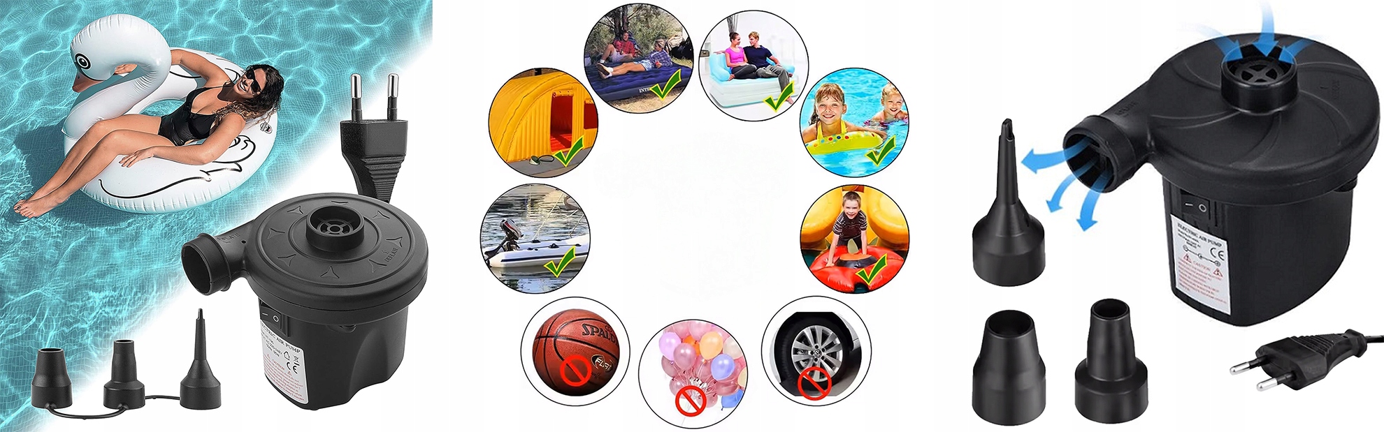 благодаря функции 2IN1 не только заполняет различные объекты воздухом, но также позволяет им быстро опорожнять. Набор включает в себя три сменных совета с различными диаметрами, что обеспечивает полную совместимость со многими надувными аксессуарами.