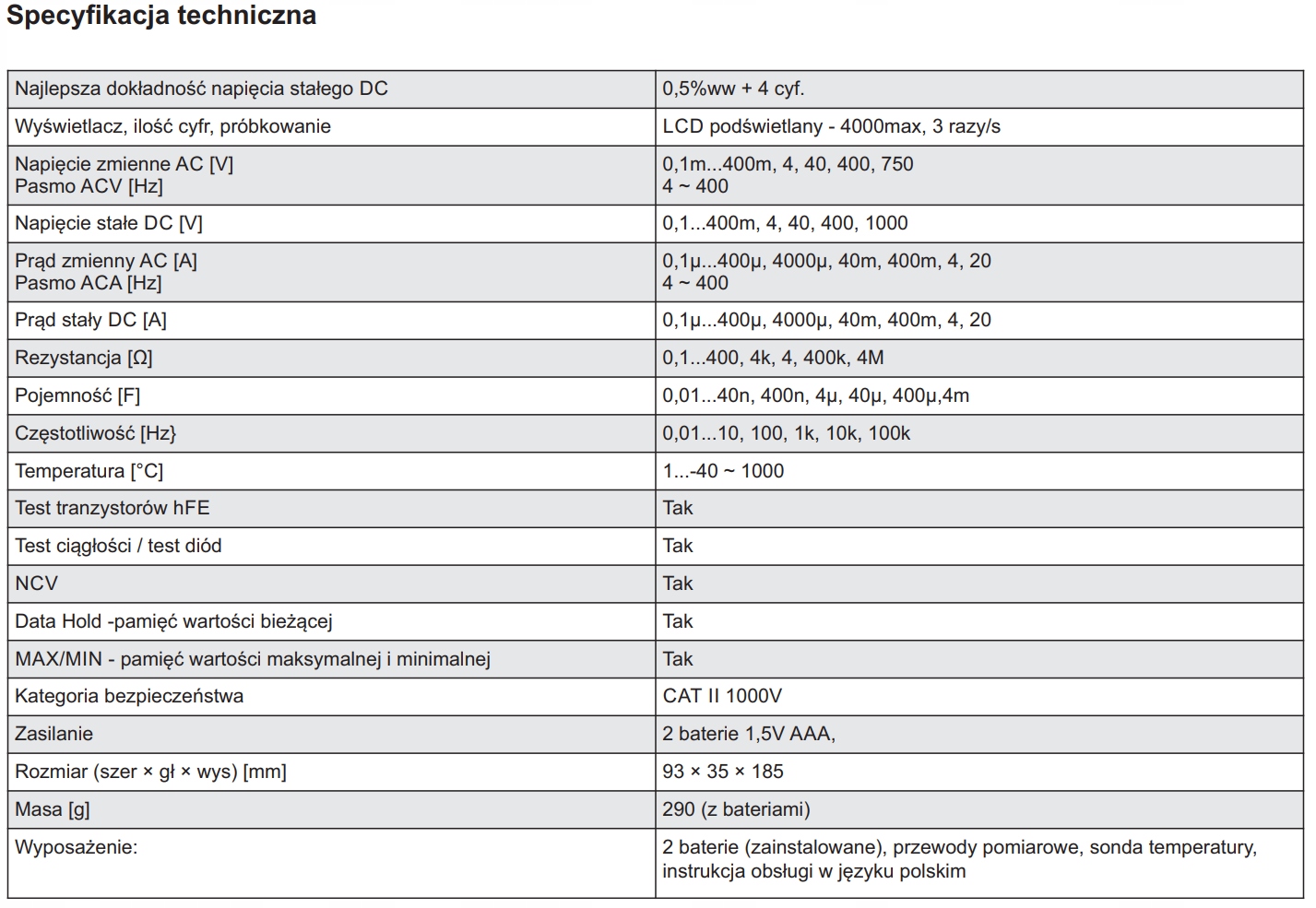 VC97A TRMS ЖК-мультиметр 4000max NCV, MAX/MIN/HOLD, Temp, hFE