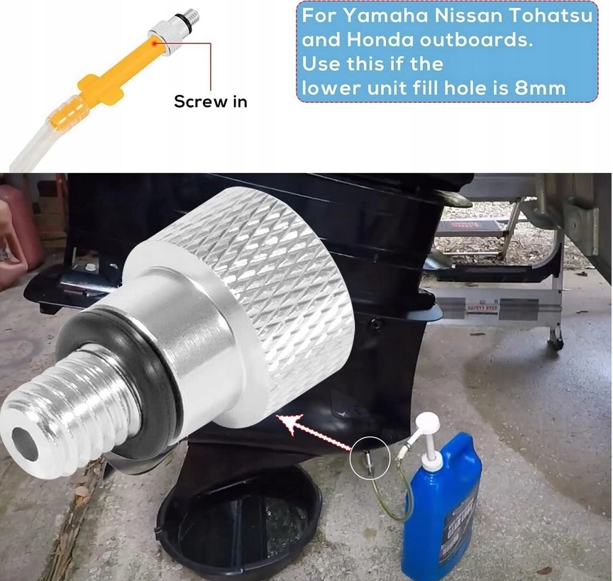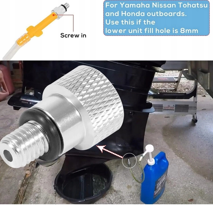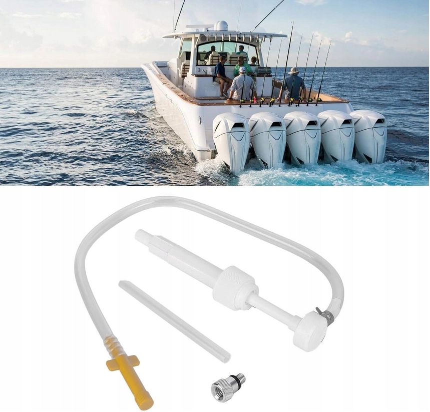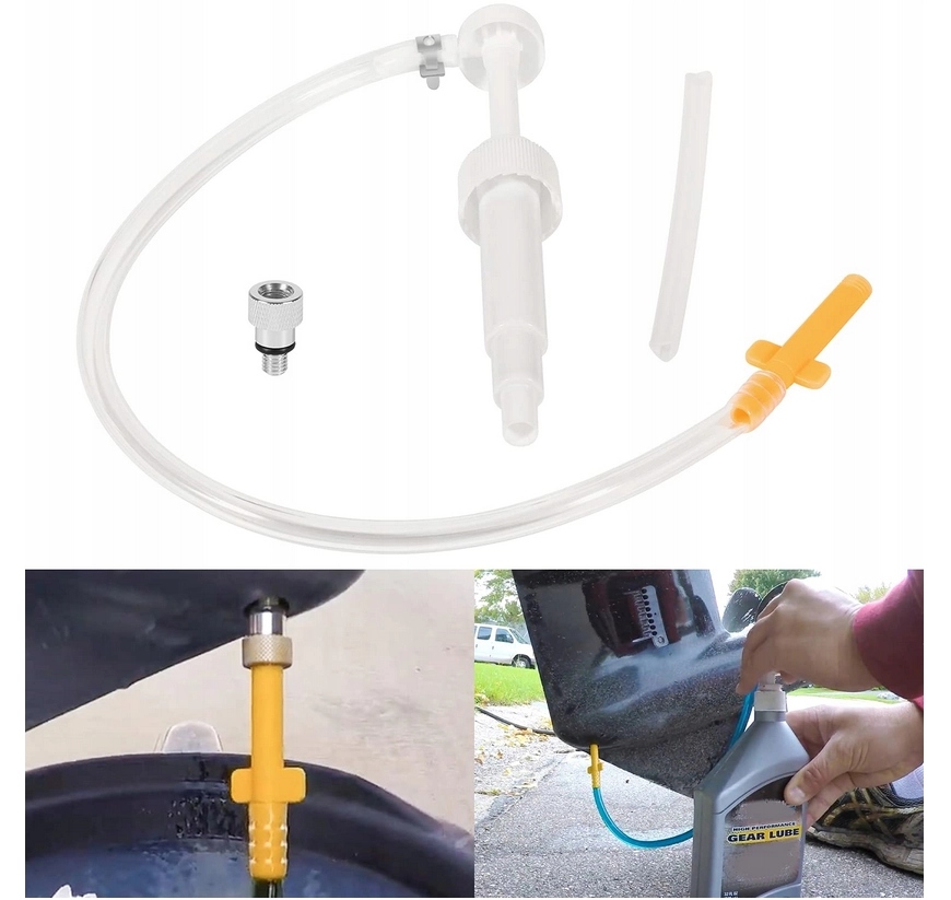 УНИВЕРСАЛЬНЫЙ ЗУБЧАТЫЙ СМАЗОЧНЫЙ НАСОС — Насос для замены трансмиссионного масла в нижней части подвесного или стационарного двигателя на лодках и яхтах. Насос, привинченный к масляной бутылке, используется для перекачки трансмиссионного масла в нижнюю часть двигателя. Конец трубки имеет резьбу, такое решение обеспечивает полную герметичность при замене. В комплект входит трубка и переходник на метрическую резьбу. Насос идеально подходит для бутылок емкостью 1 л и четверть галлона (резьба/крышка 28 мм).