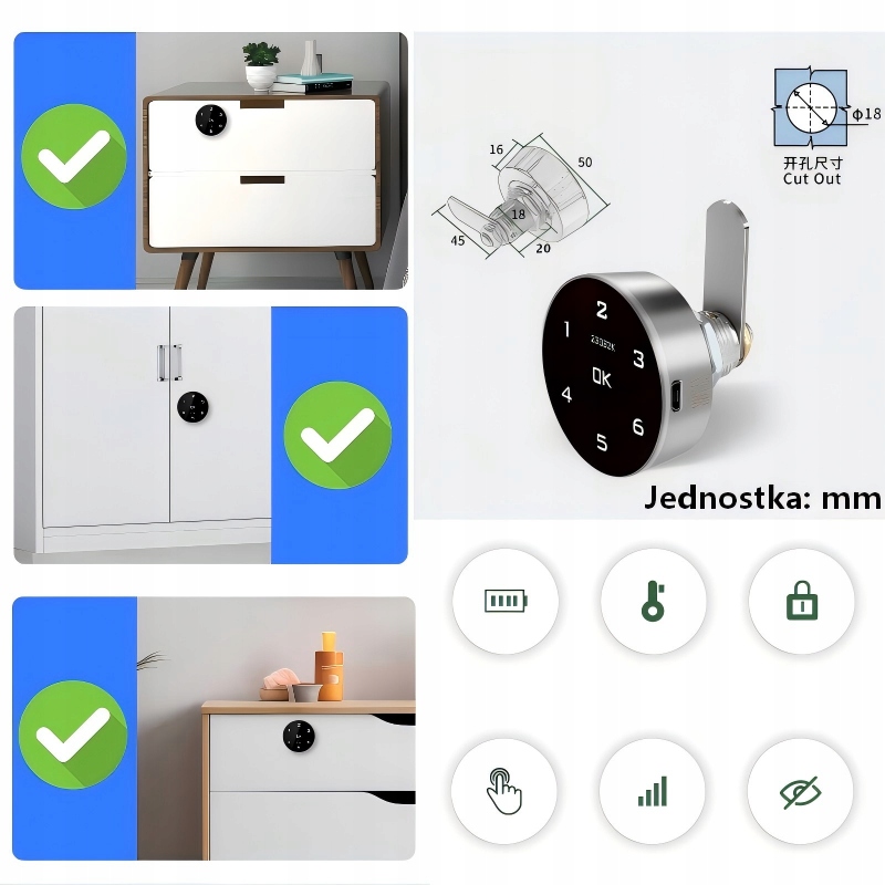 Откройте для себя новый уровень безопасности и универсальности с электронным замком AjieQaQ! ✨ Этот инновационный замок сочетает в себе три проверенных метода разблокировки — PIN-код, NFC-карта и NFC на телефоне — обеспечивая вам максимальное удобство и контроль над доступом к вашим вещам. Благодаря уникальной конструкции с двойными створками (для двойных дверей)📌 он идеально подходит для различных типов мебели и бытовой техники - как для одинарных, так и для двойных дверей и ящиков. Оснащенный прочной конструкцией из высококачественного металла, долговечным-ионным аккумулятором и расширенными функциями безопасности🛡️, это решение для всех, кто ценит конфиденциальность и комфорт дома🏡, в офисе💼 или общественные места🏬.