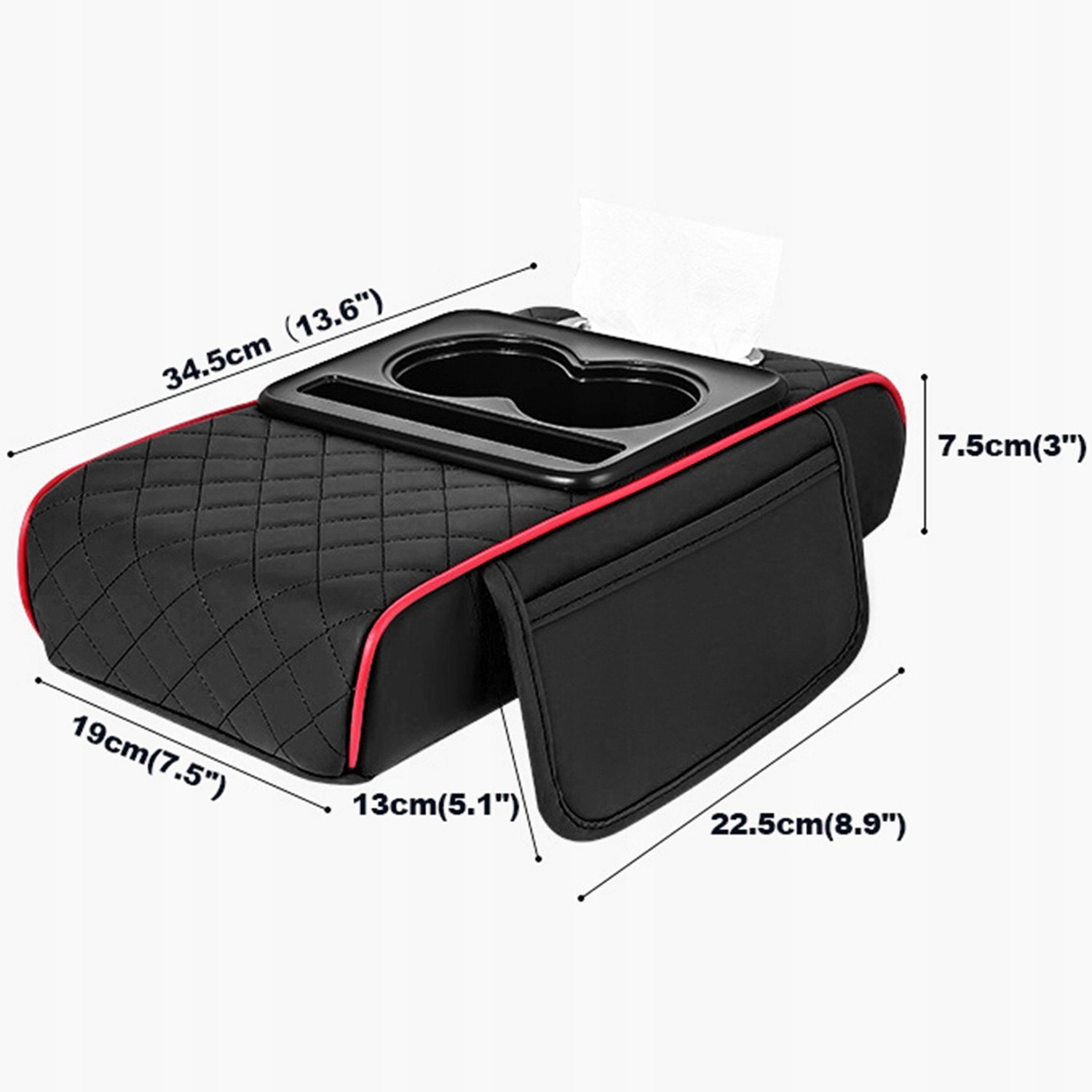🚗Многофункциональный дизайн: Эта практичная накладка на подлокотник оснащена встроенным ящиком для салфеток, подстаканником, гнездом для мобильного телефона и боковыми карманами для хранения, обеспечивая легкий доступ к салфеткам, чашкам, мобильным телефонам, картам, ключам, ручкам и другим мелким предметам.