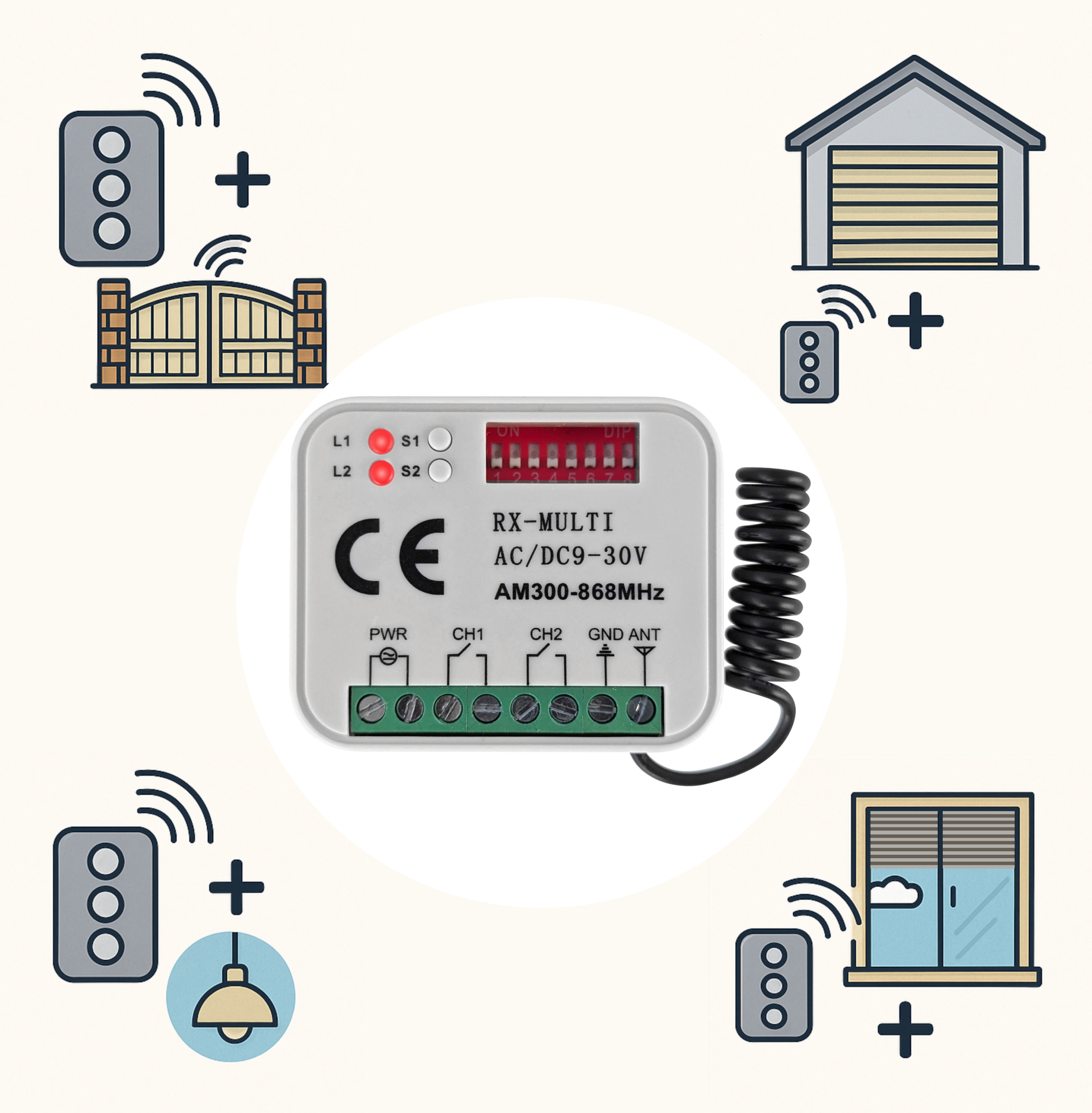 ✅ Диапазон частот 300–868 МГц - поддерживает большинство пультов дистанционного управления, доступных на рынке