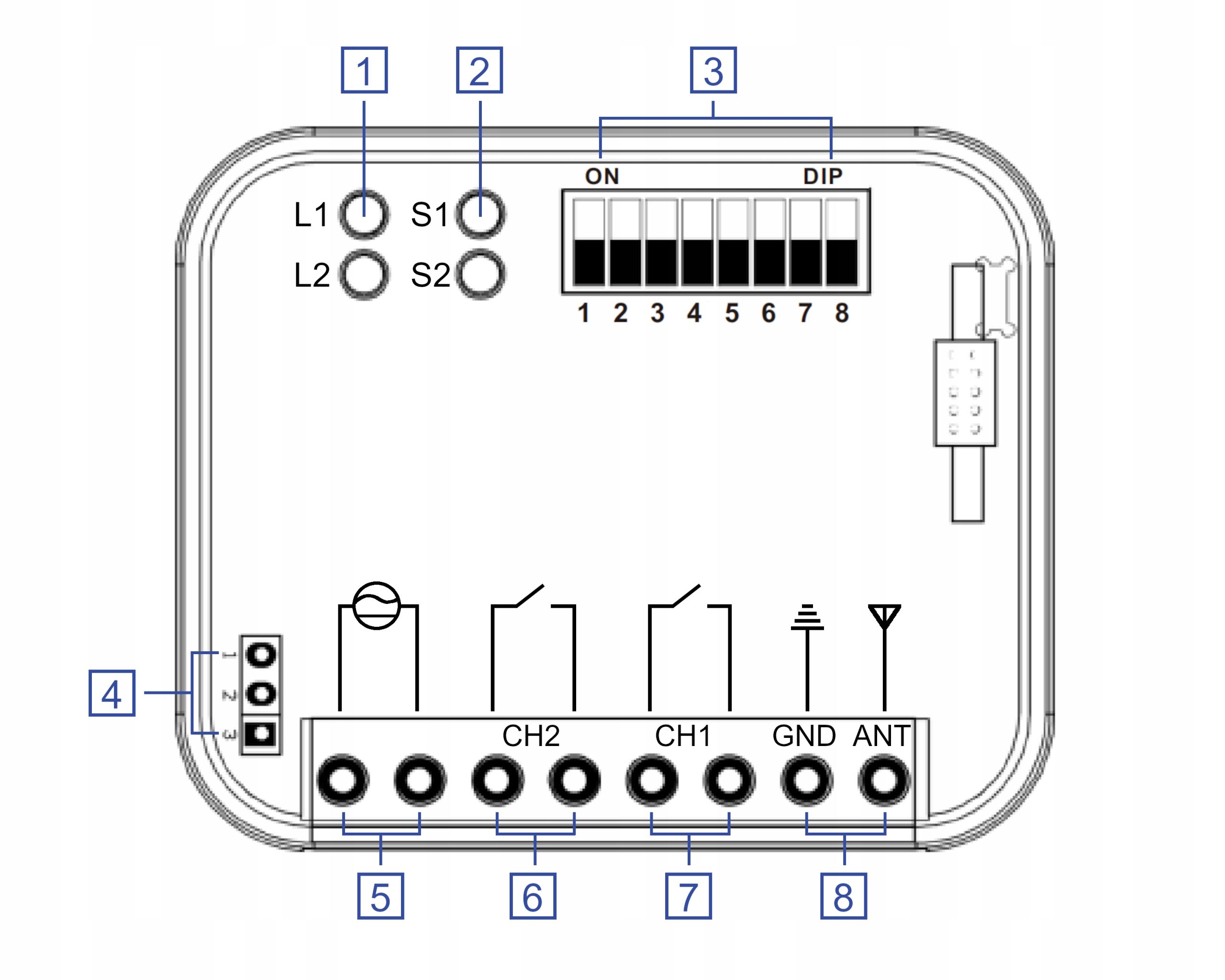 ✅ DIP-переключатели, позволяющие настроить режим работы на пульты различных марок