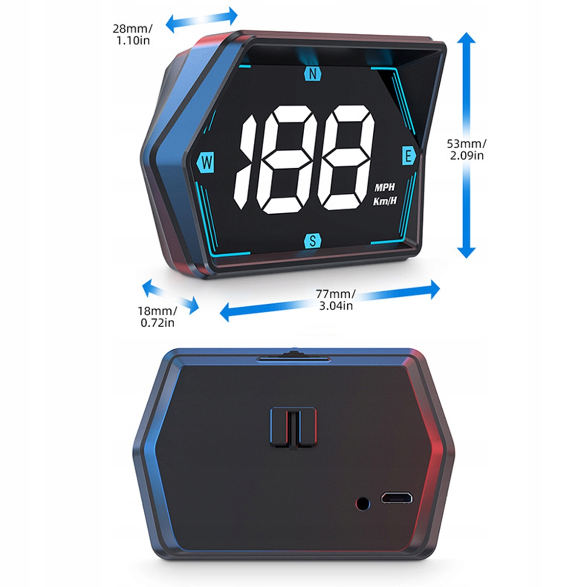 Этот цифровой спидометр размером 77*53*18 мм имеет небольшой корпус, который поместится в любом месте вашего автомобиля. Компактный размер обеспечивает простую установку и не загораживает обзор во время вождения. Вы можете установить его на приборную панель с помощью противоскользящей ленты или установить на лобовое стекло с помощью присоски.