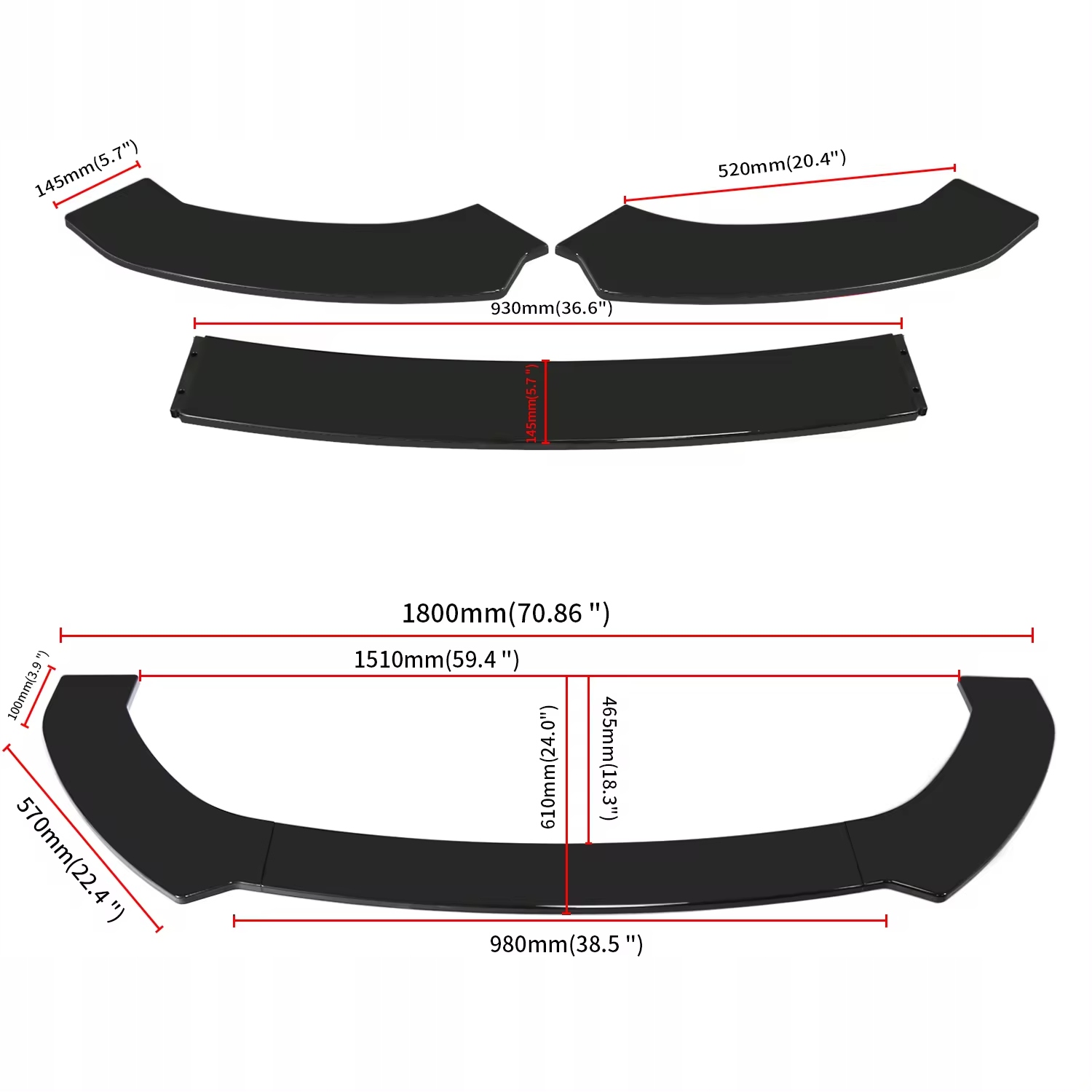 ЮБКА ПЕРЕДНЕГО БАМПЕРА УНИВЕРСАЛЬНАЯ С РАЗДЕЛИТЕЛЕМ, ЧЕРНАЯ, 3 предмета