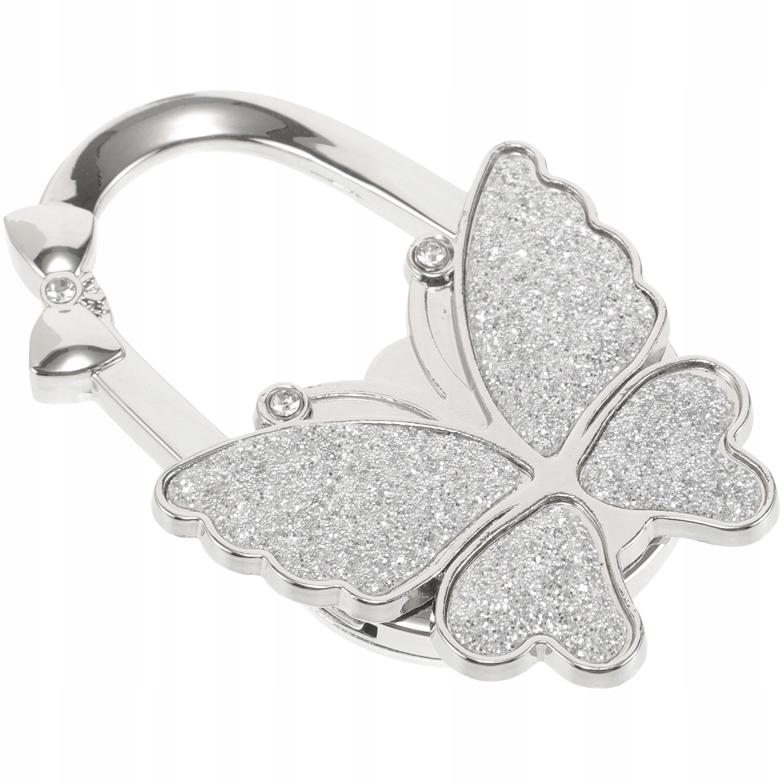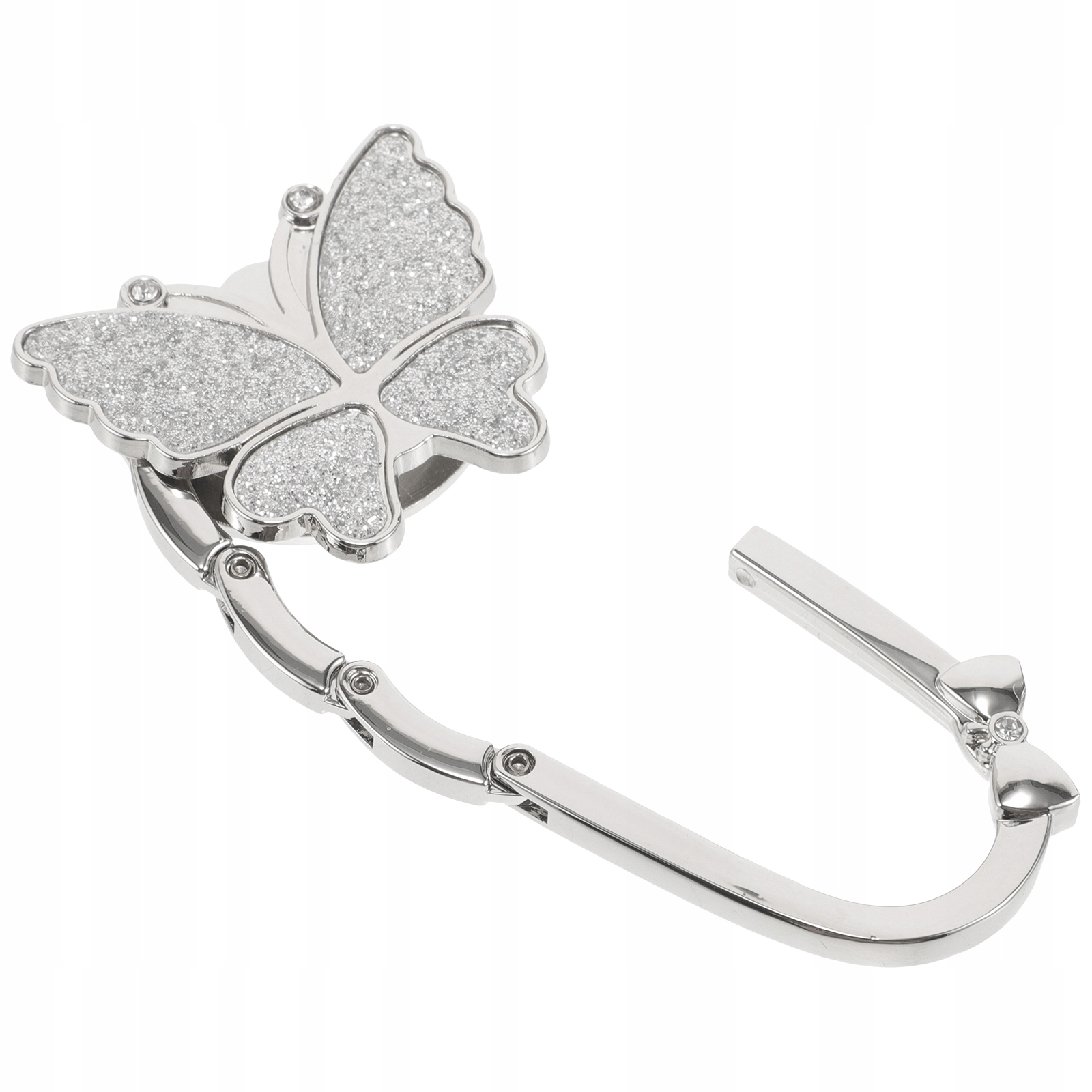 Универсальный серебряный крючок для сумки, который можно повесить на стол и сумочку.